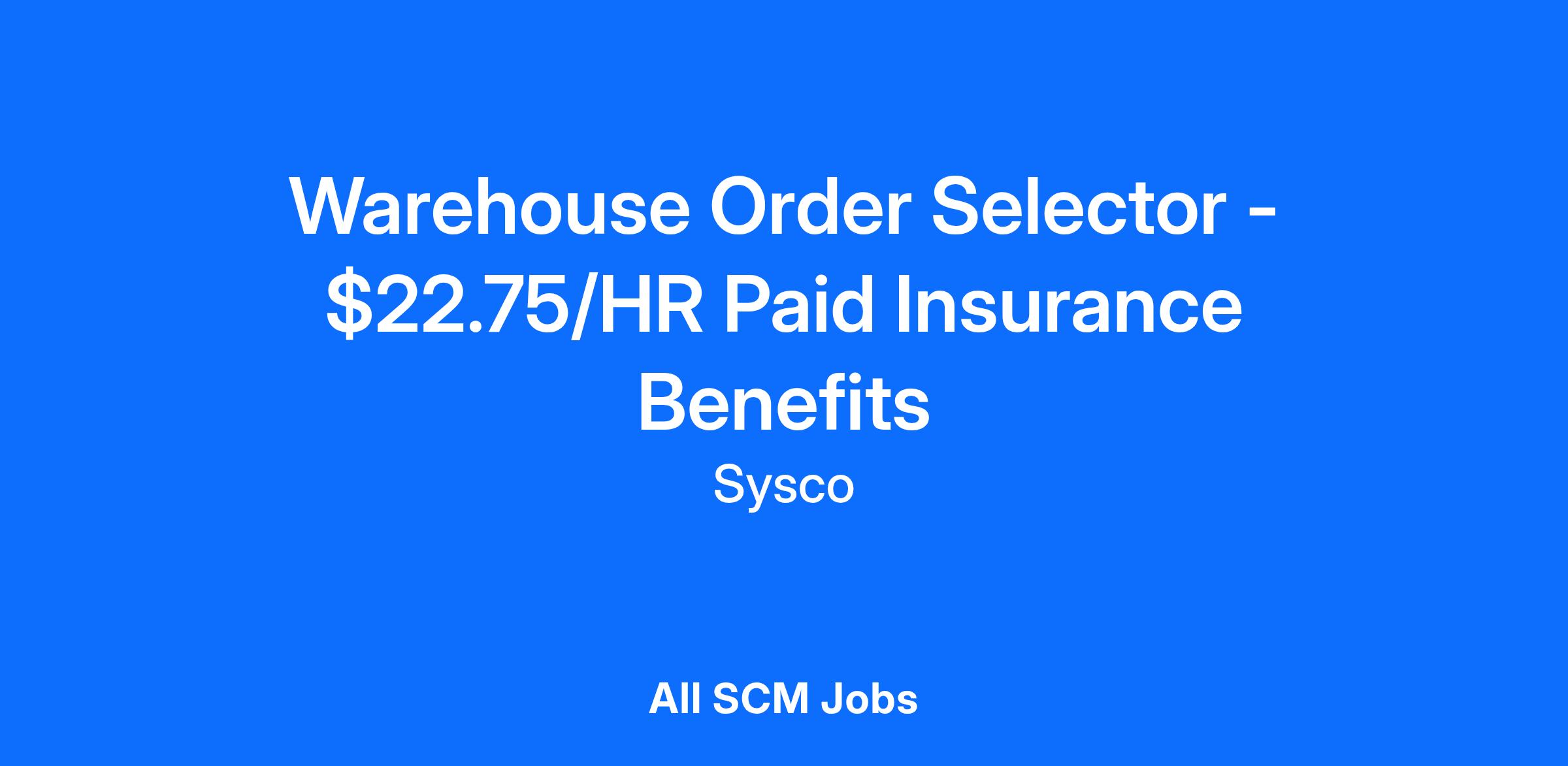 For information on Sysco’s Benefits, please visit https://SyscoBenefits.comIMMEDIATELY HIRING Warehouse Order Selectors **5 YEARS EXPERIENCE REQUIRED**