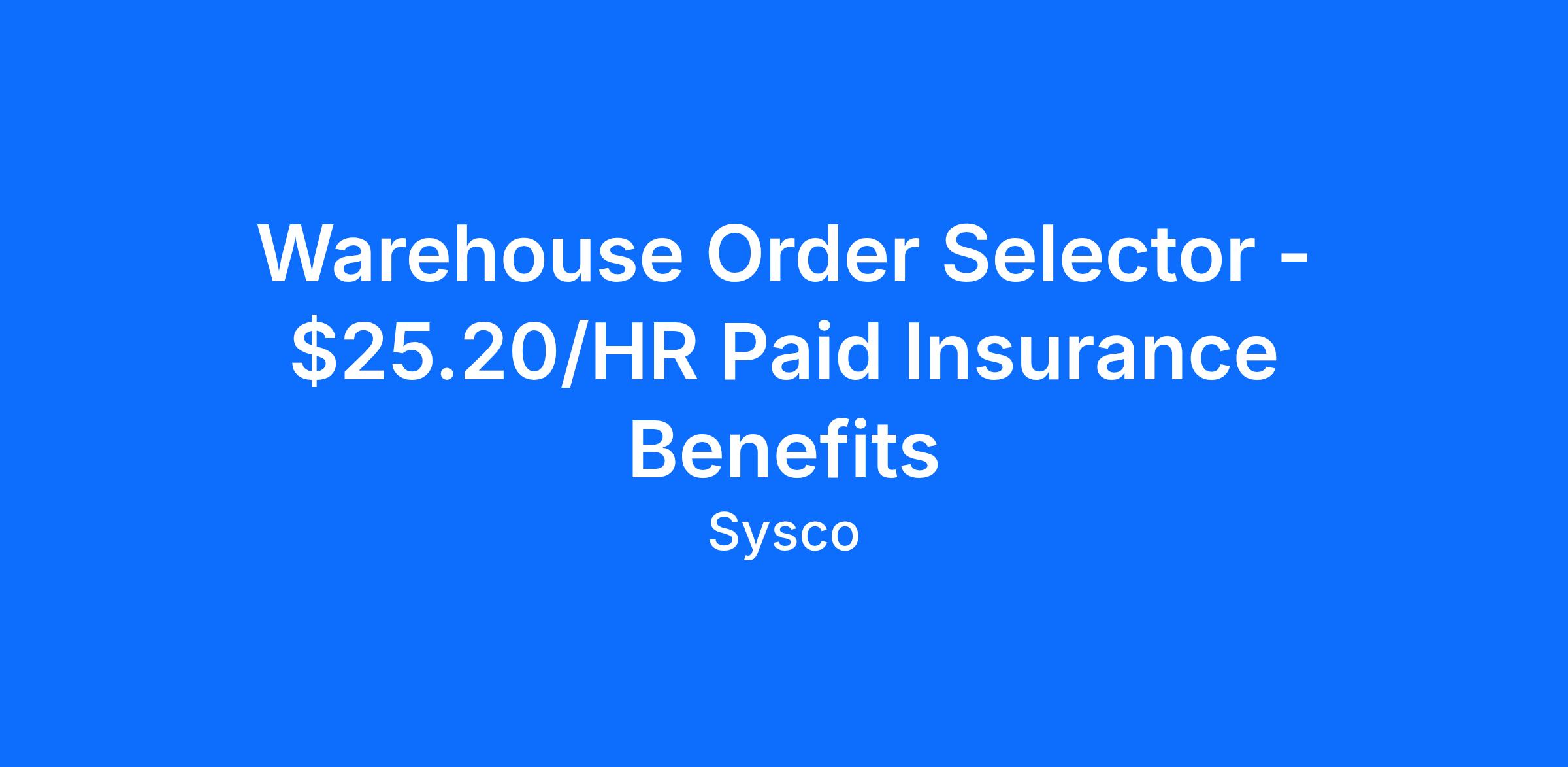 For information on Sysco’s Benefits, please visit https://SyscoBenefits.comIMMEDIATELY HIRING Warehouse Order Selectors **5 YEARS EXPERIENCE REQUIRED**