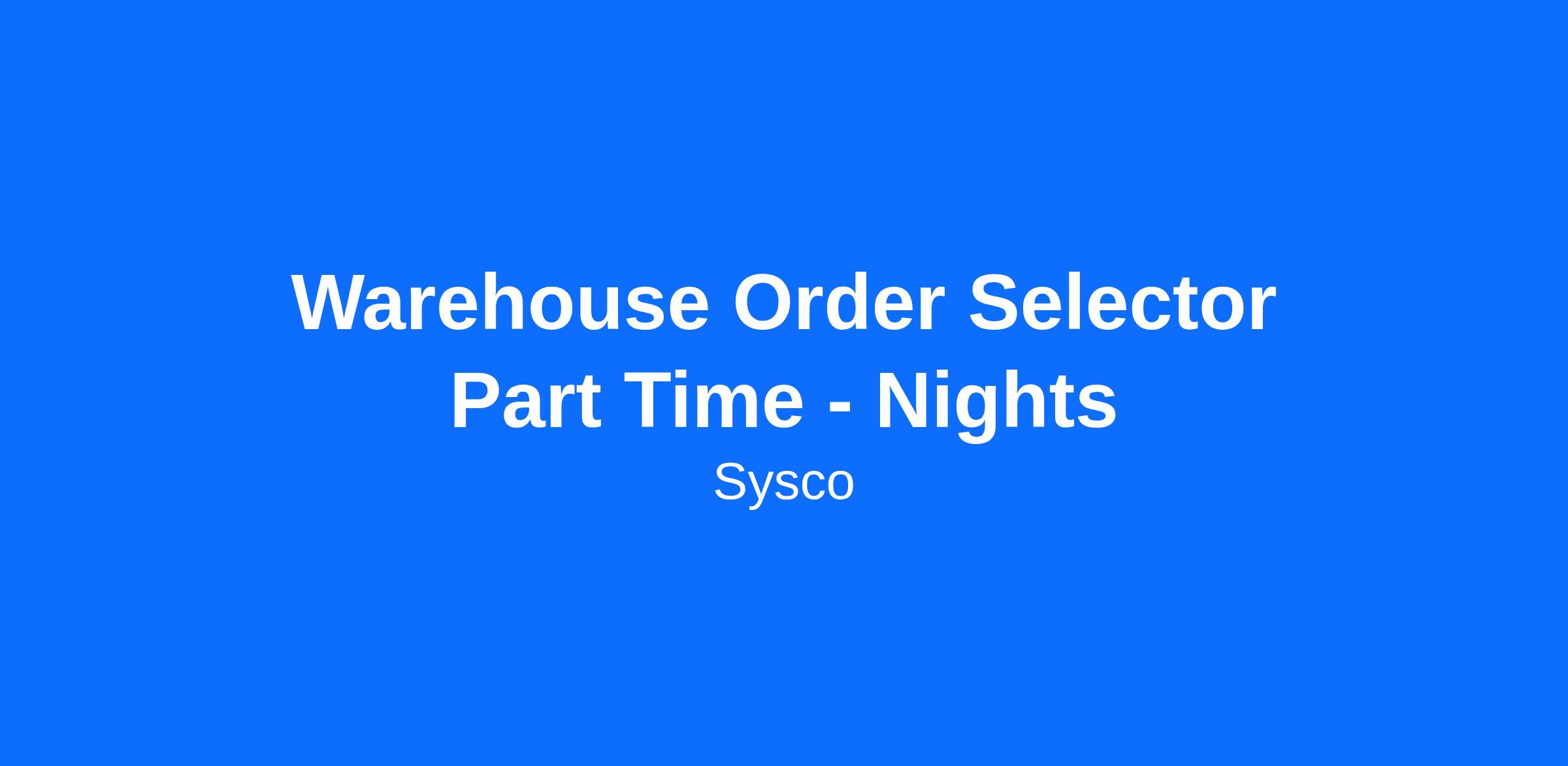 For information on Sysco’s Benefits, please visit https://SyscoBenefits.comJOB SUMMARY: