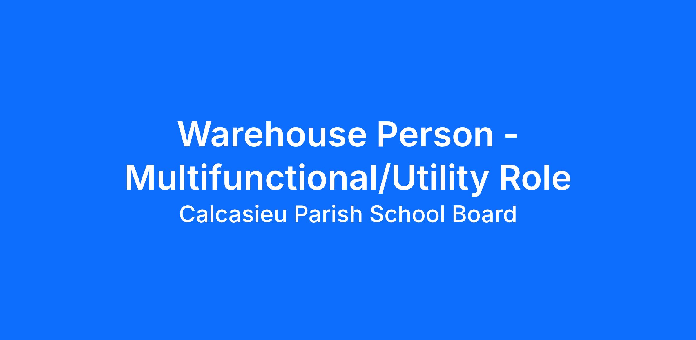 Applicants must have a high school diploma, be able to pass a physical, have a clean driving record, and be able to obtain a CDL after hire. Must be able to handle warehouse duties, including but not limited to, lifting objects in excess of 100 Pounds, bending squatting, or working in awkward positions. Must possess adequate computer skills. Must be flexible to fit in several job roles. Must be able to perform duties professionally in stressful situations and be able to meet constant deadlines. Must be able to establish and maintain positive working relationships with school stakeholders, state and federal agencies and the general public.