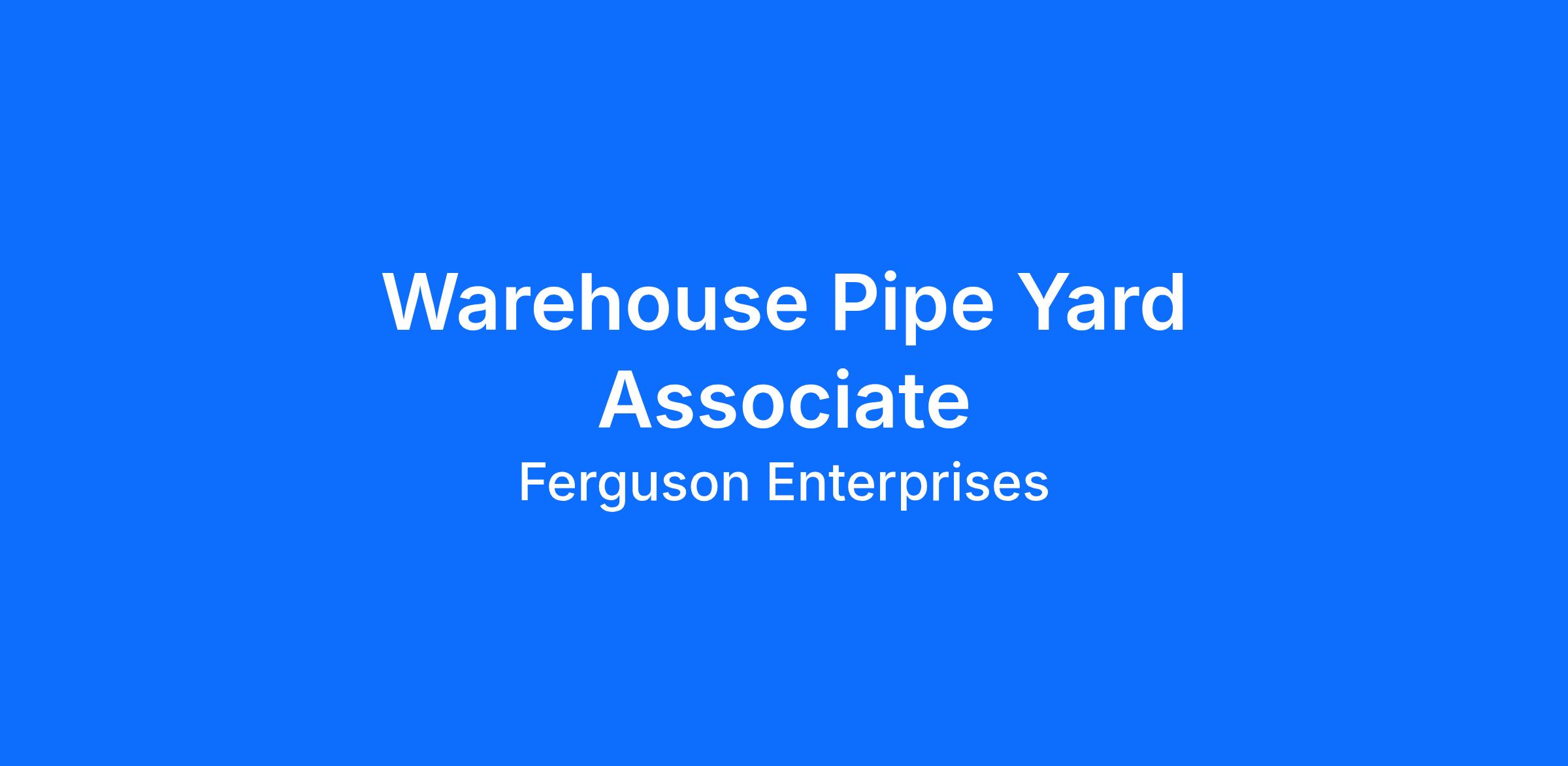 Ferguson is currently seeking the right individual to fill an immediate need for a Warehouse Pipe Yard Associate.