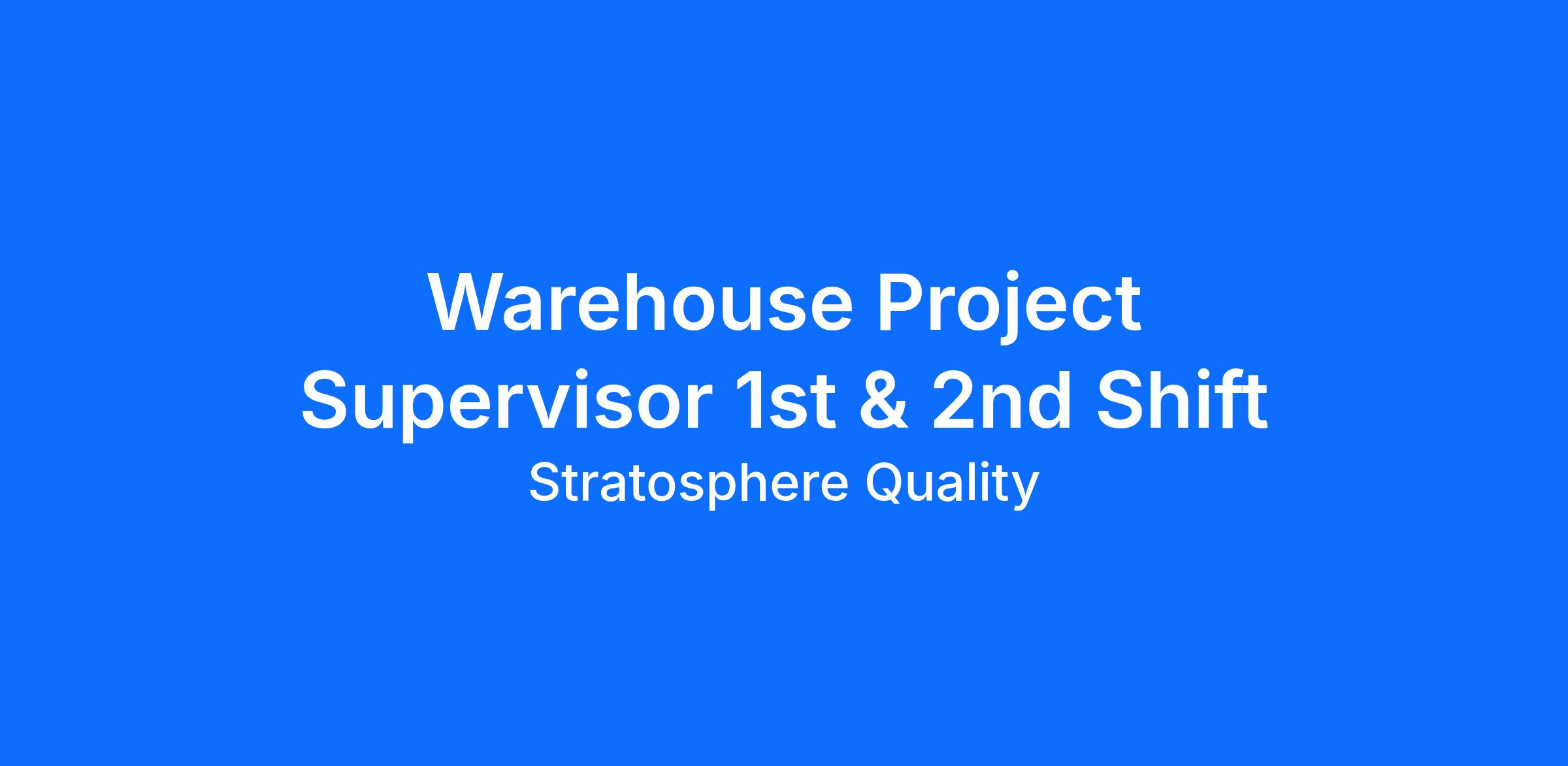 Project Supervisor 1st & 2nd shift
