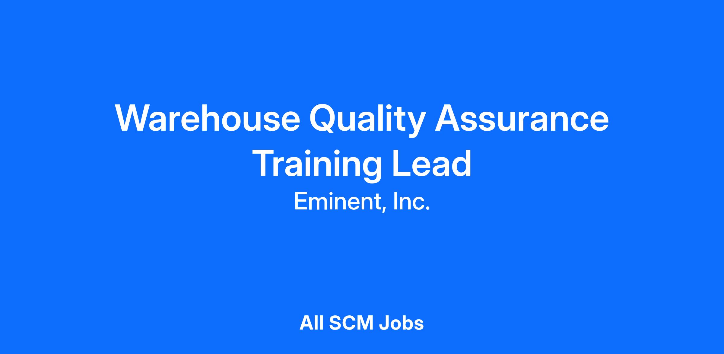 Main purpose of the Quality Assurance Training Lead role: