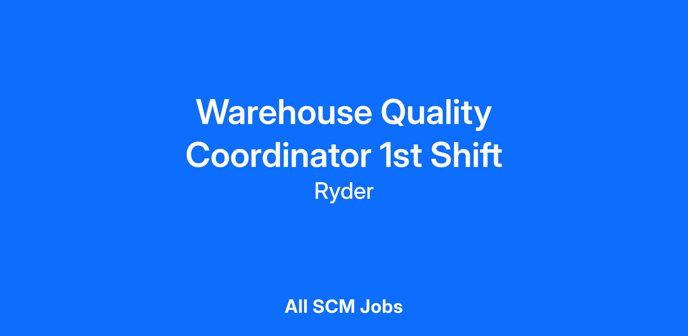Ryder is immediately hiring a Permanent Full Time Quality Coordinators at our warehouse manufacturing facility in Houston, Texas