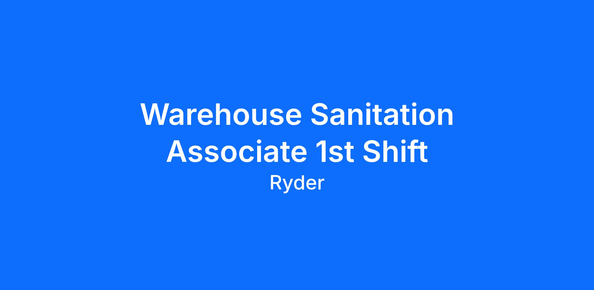 Ryder is immediately hiring a Permanent Full Time Sanitation Associate in in Apopka, Florida