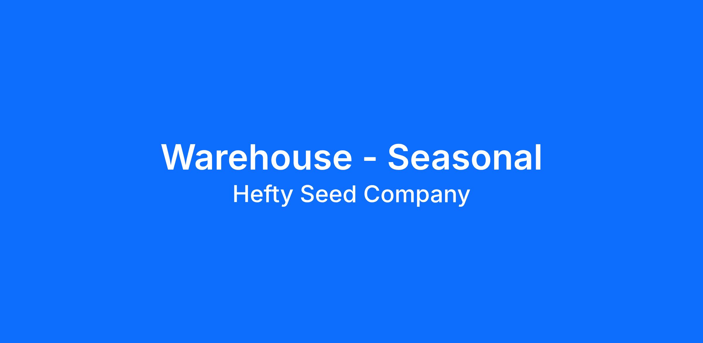 Hefty Seed Company is a progressive, rapidly growing agriculture retailer that is hiring dependable seasonal warehouse specialists. We are looking for someone with the ability to multi-task and work in a fast-paced environment while practicing safety. The desired candidate for this position will have a positive attitude, excellent follow-through skills and great verbal and written communication. A farming background with previous equipment maintenance experience is helpful but not required.