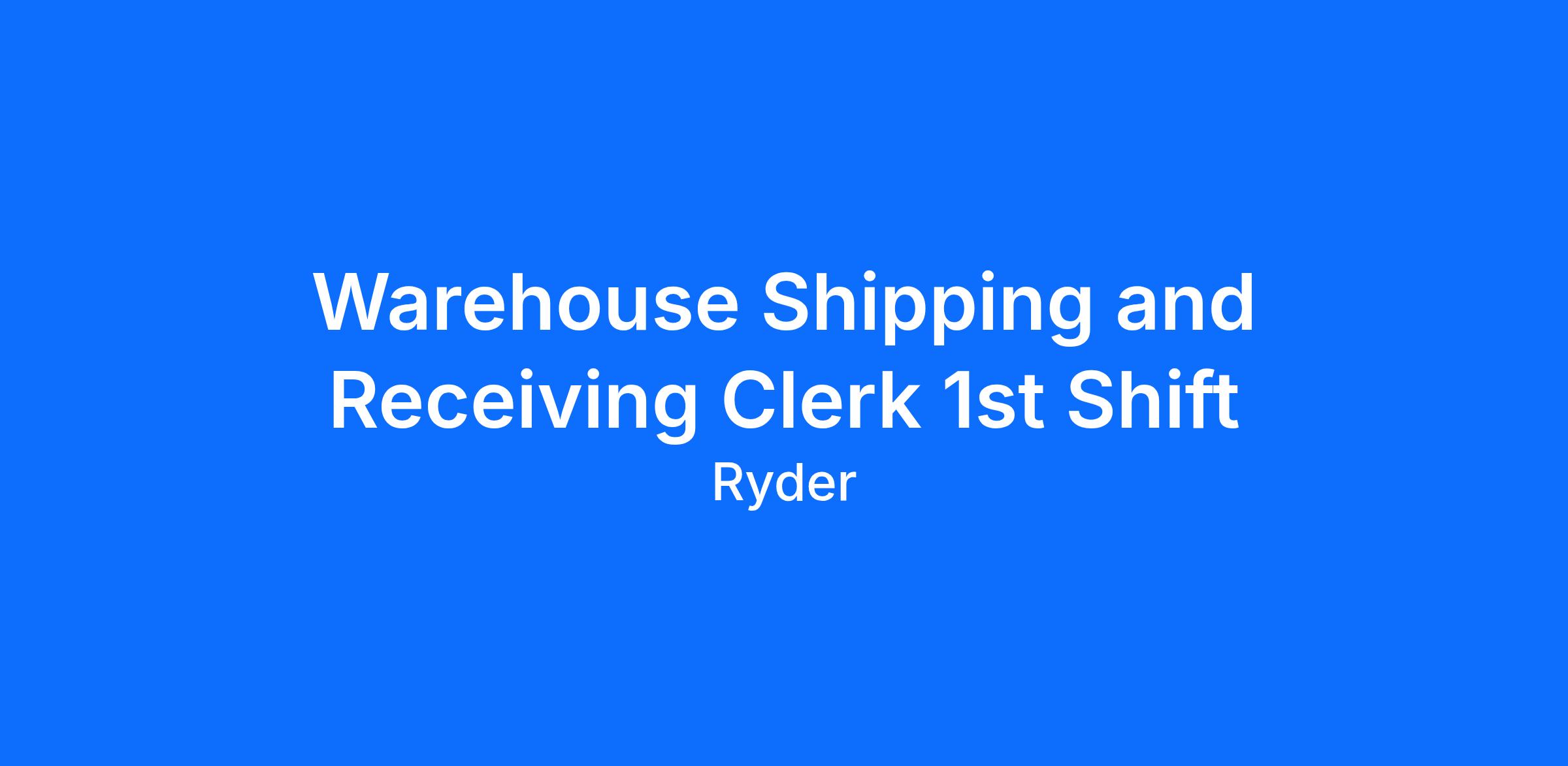 Ryder is immediately hiring a Permanent Full Time Shipping and Receiving Clerk Associate in Greencastle, PA