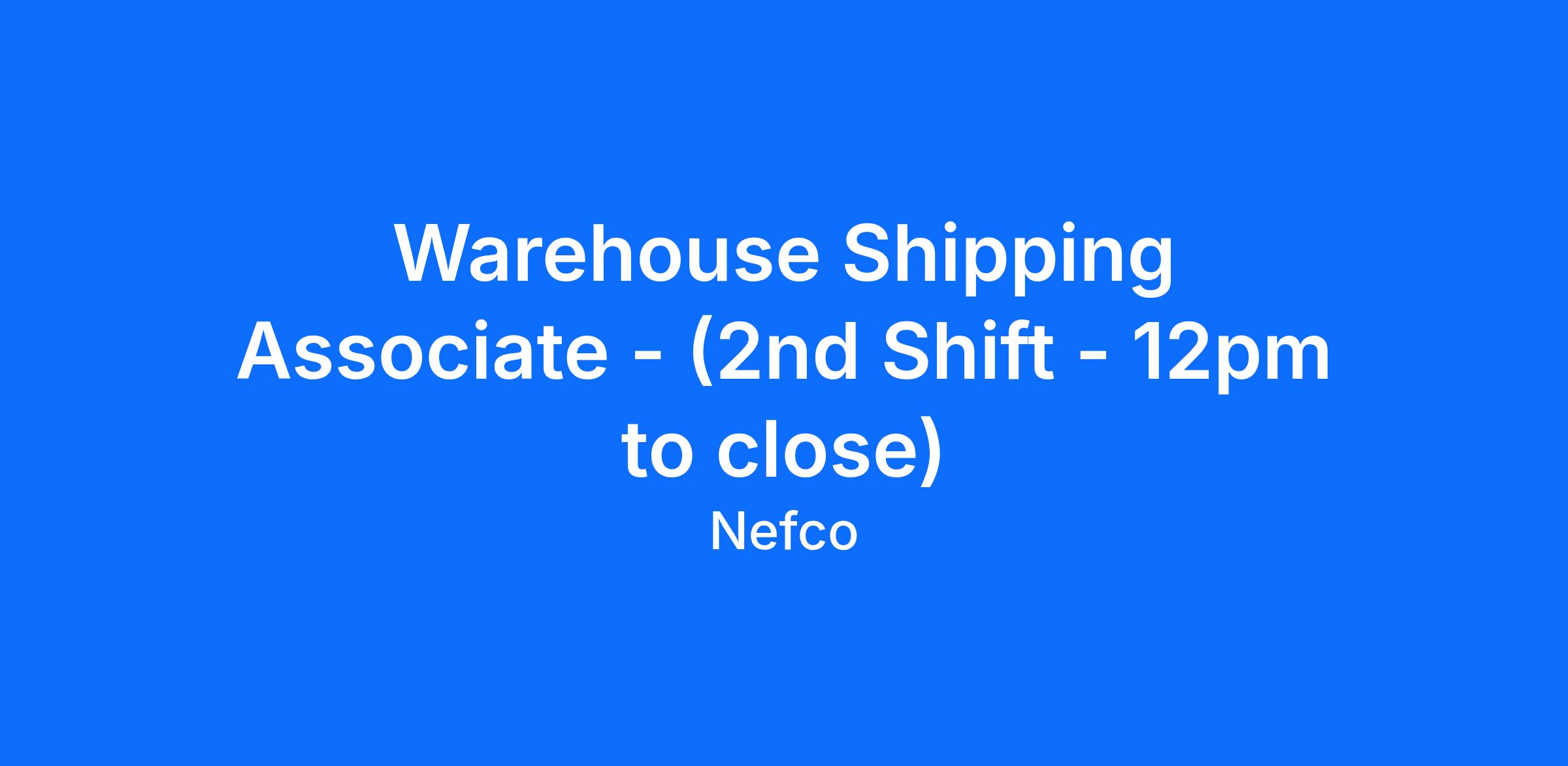 Job Summary: Reporting to the shift Warehouse Lead or Logistics Manager, this position has primary responsibility for all functions and paperwork relating to pulling, packing and shipping material out of our distribution facility to customers, vendors, or other NEFCO distribution facilities.