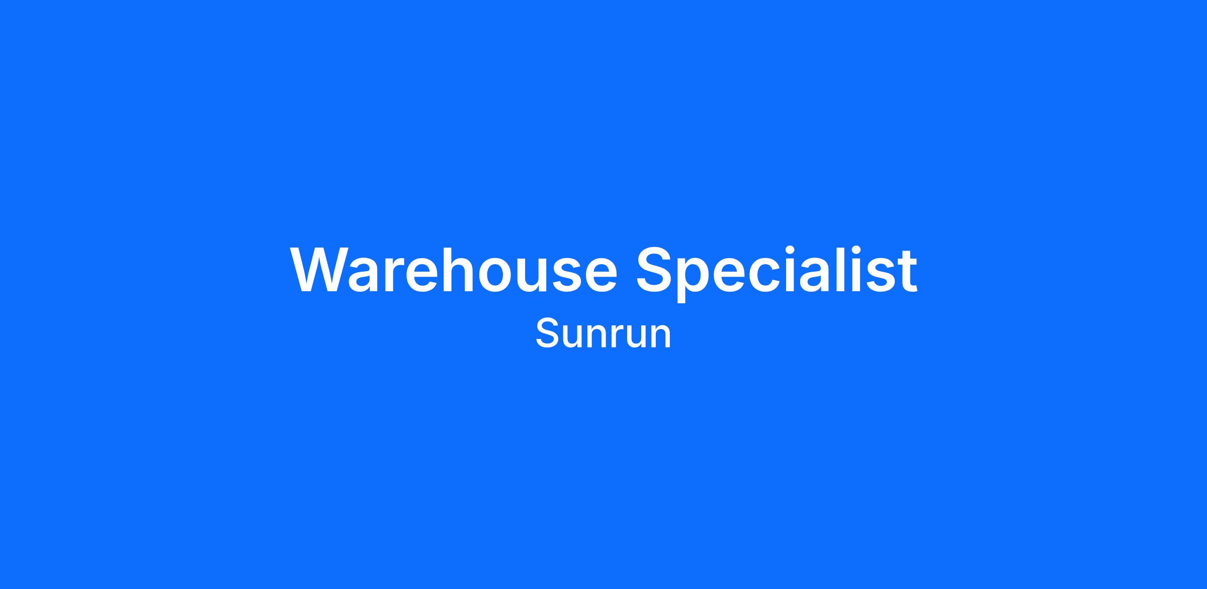 The Warehouse Specialist plays a key role in Sunrun Operations by ensuring material is safely and accurately stored in our warehouses and then deployed to our installers. This role is responsible for receiving, shipping, building jobs, inventory accuracy, and warehouse cleanliness.