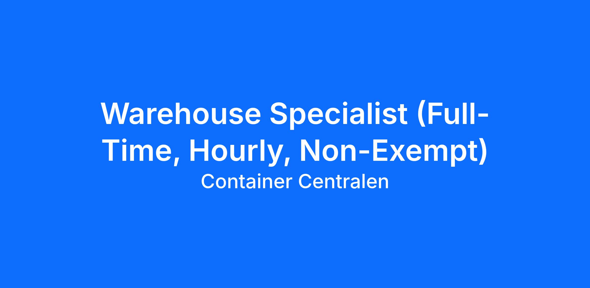 Warehouse Specialist – (Full-Time, Hourly, Non-Exempt)