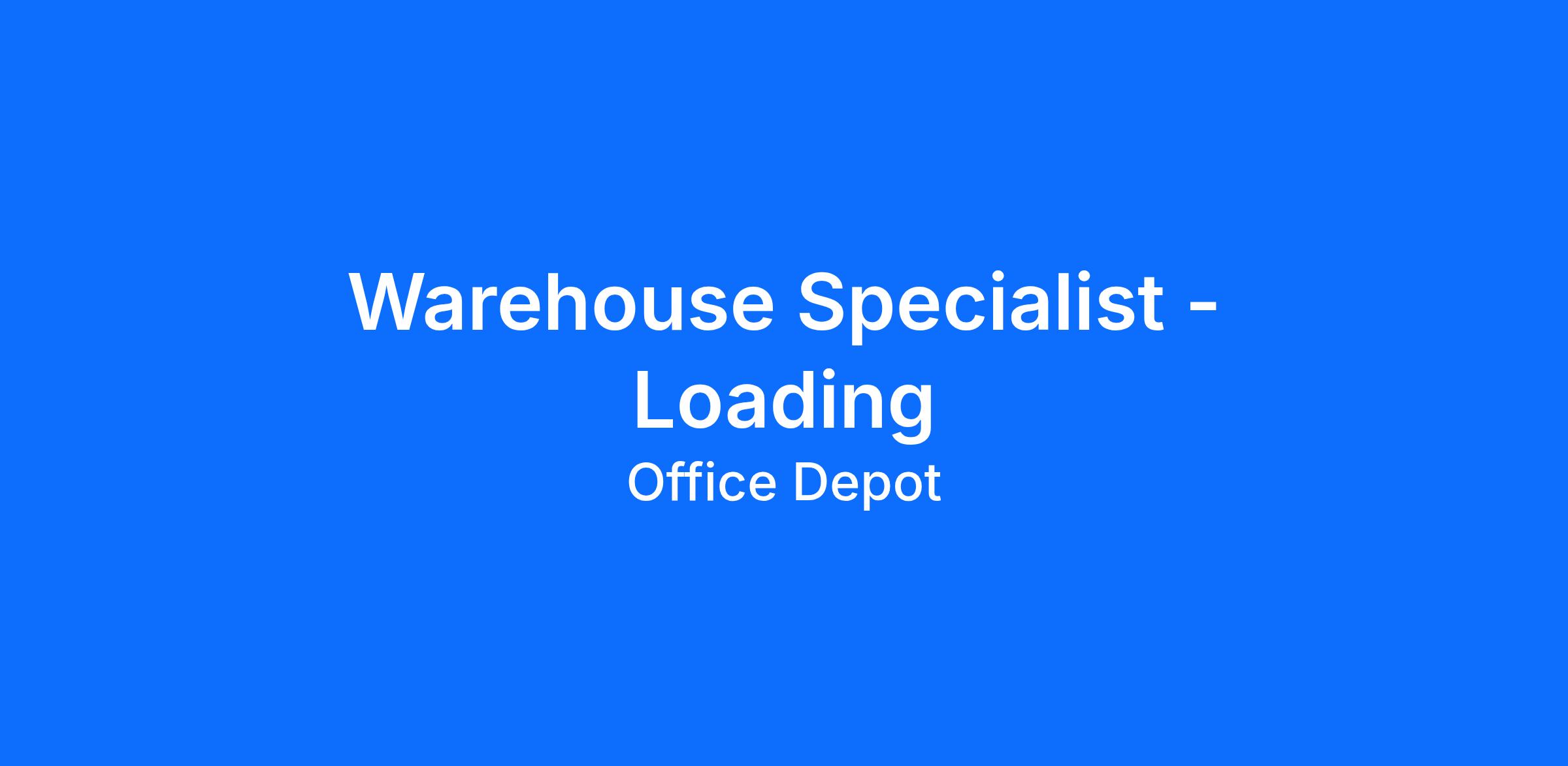 Warehouse Specialist - Loading