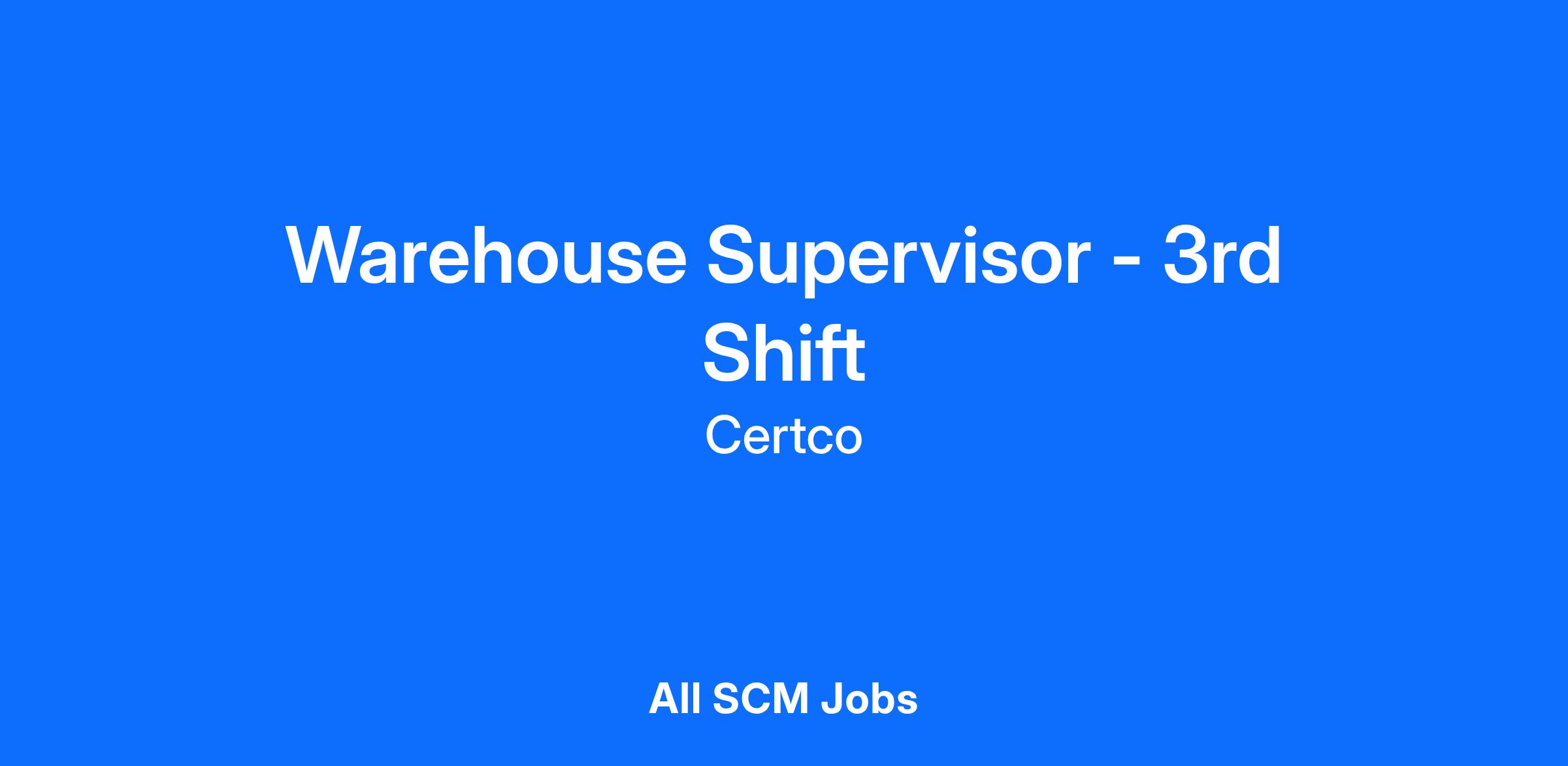 Are you a hands-on leader with a passion for efficiency, accuracy, and team success? Certco is looking for a Warehouse Supervisor to manage our Femrite Drive location's third shift receiving operations, ensuring smooth workflow, high productivity, and a strong culture of safety. In this role, you’ll be responsible for monitoring team performance, maintaining inventory integrity through our WMS system, and driving continuous improvement in warehouse operations. You’ll lead by example, fostering a positive and productive work environment while ensuring all safety protocols are followed.