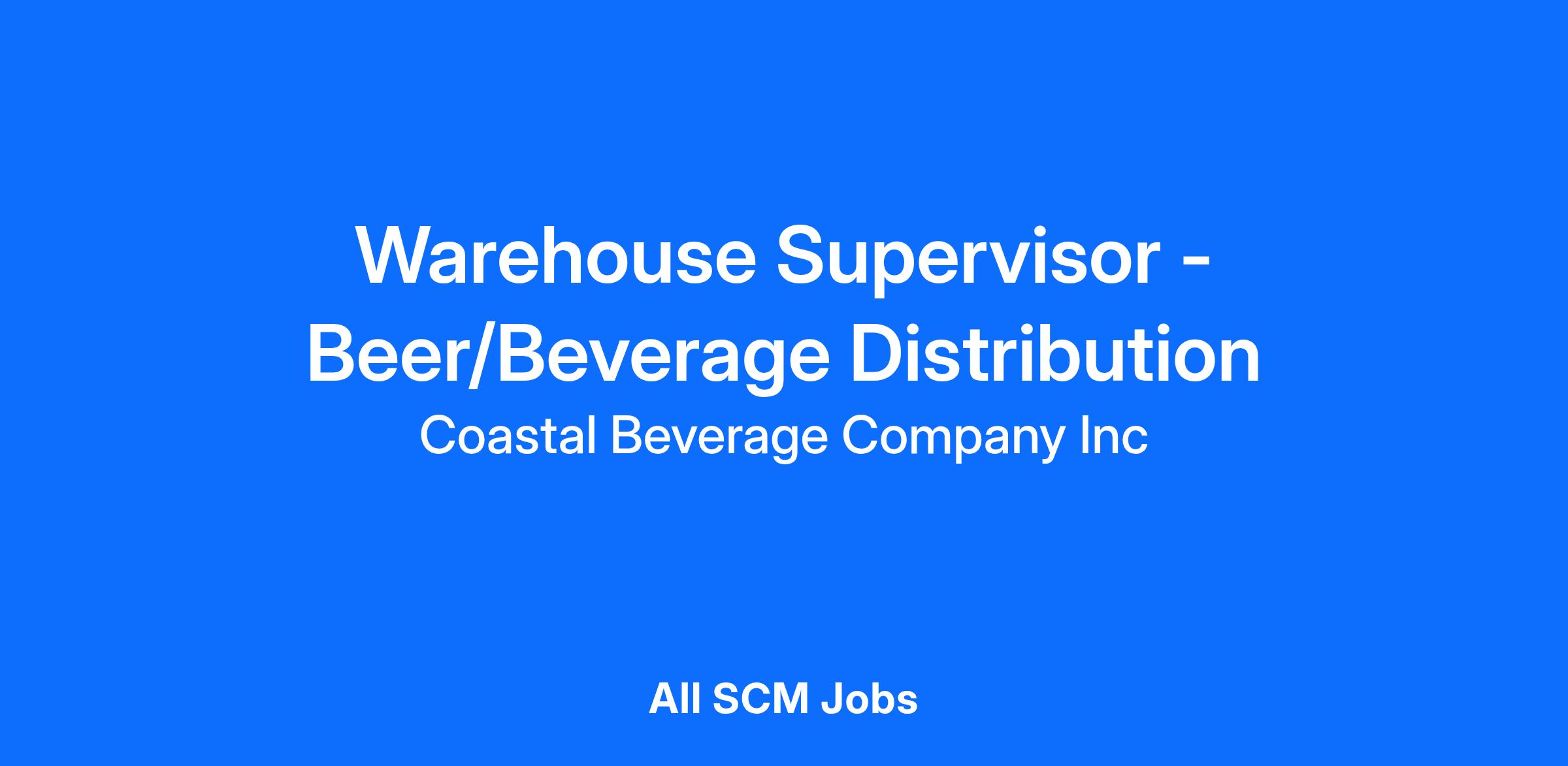 Join the COASTAL CREW! Coastal Beverage Company, Inc., the leading beverage distributor in Eastern North Carolina is looking for a WAREHOUSE SUPERVISOR. If you are a service driven professional looking for a solid career with a growing company, then we invite you to join our CREW!