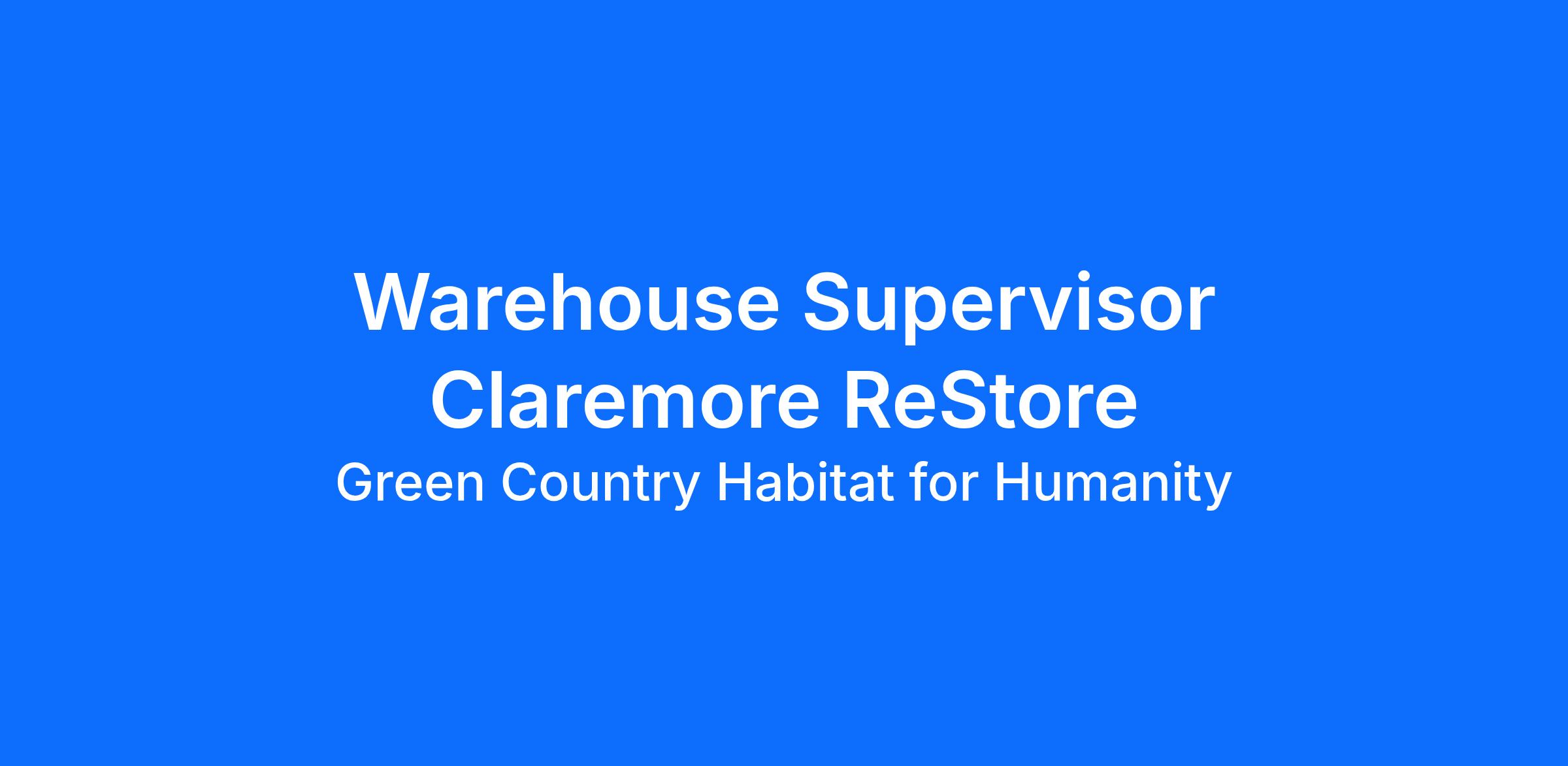 The Warehouse Supervisor is responsible for receiving donated goods and assisting customers picking up purchased items. The Warehouse Supervisor is an ambassador for Green Country Habitat for Humanity and often makes a first impression of the organization to donors and customers, therefore a positive attitude is necessary.