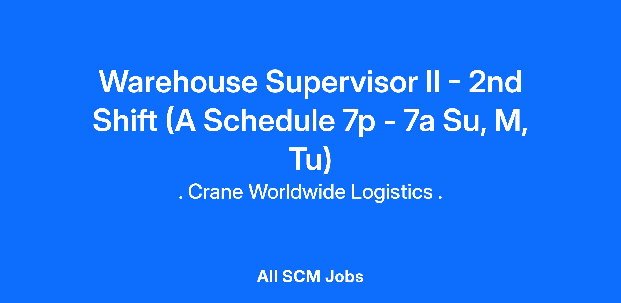 Warehouse Supervisor II - 2nd Shift (A Schedule 7p - 7a Su, M, Tu)