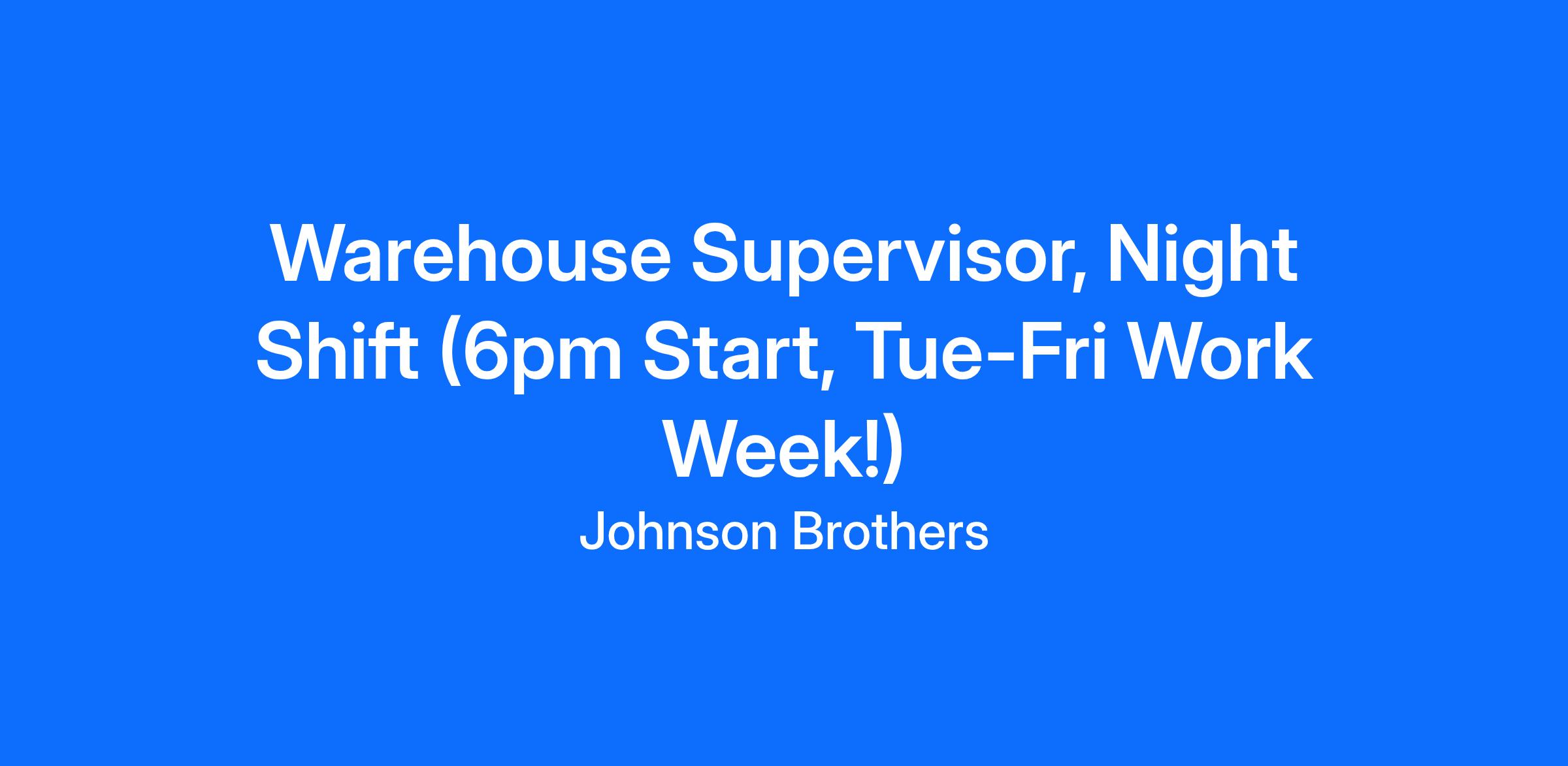 Warehouse Supervisor, Night Shift (6pm Start, Tue-Fri Work Week!)