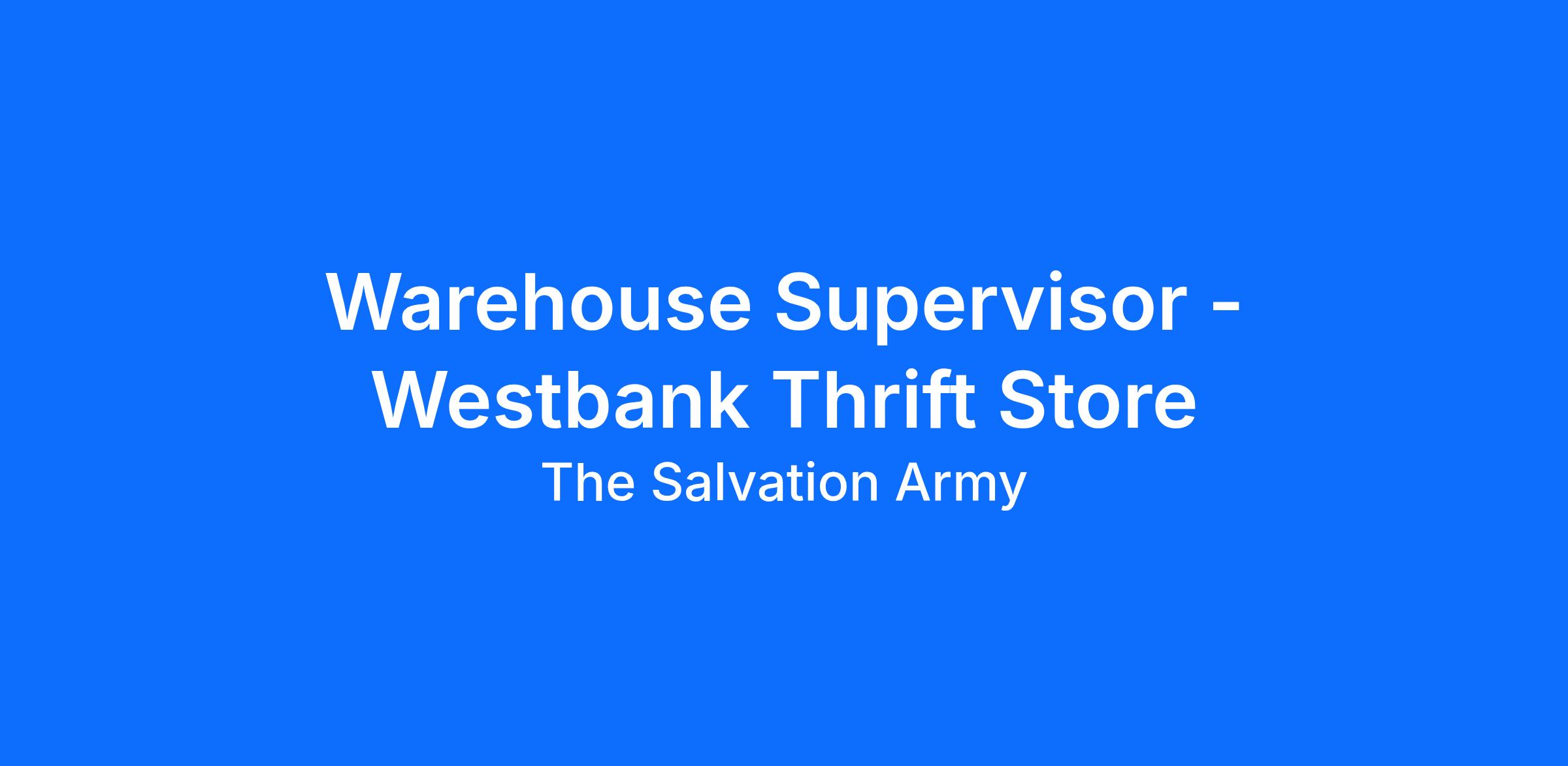 This position is for Warehouse Supervisor at the Westbank Salvation Army Thrift Store.