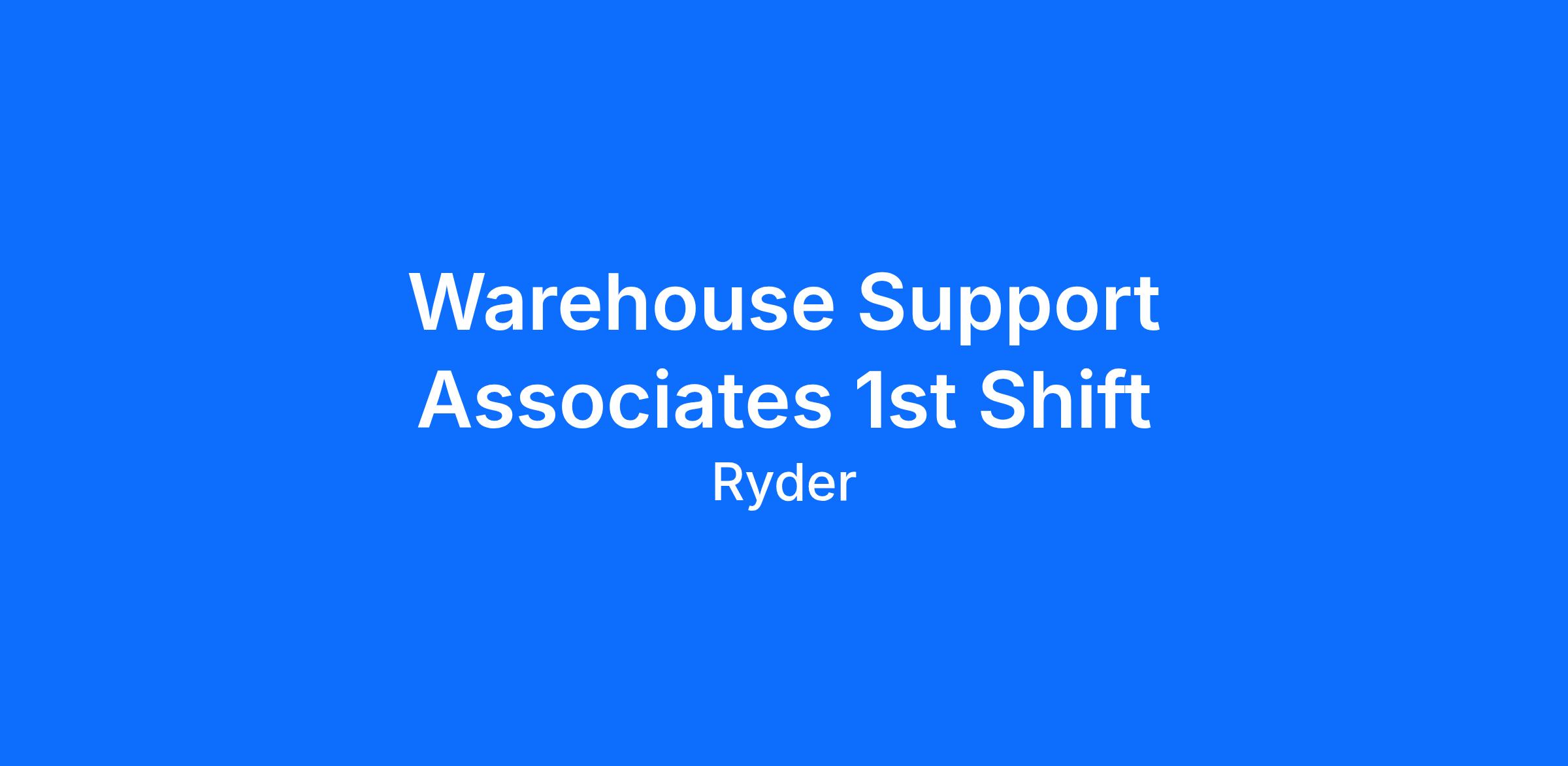 We want the right Warehouse Associate to join us at Ryder and work in the Safest Supply Chain Environment with State of the Art Equipment
