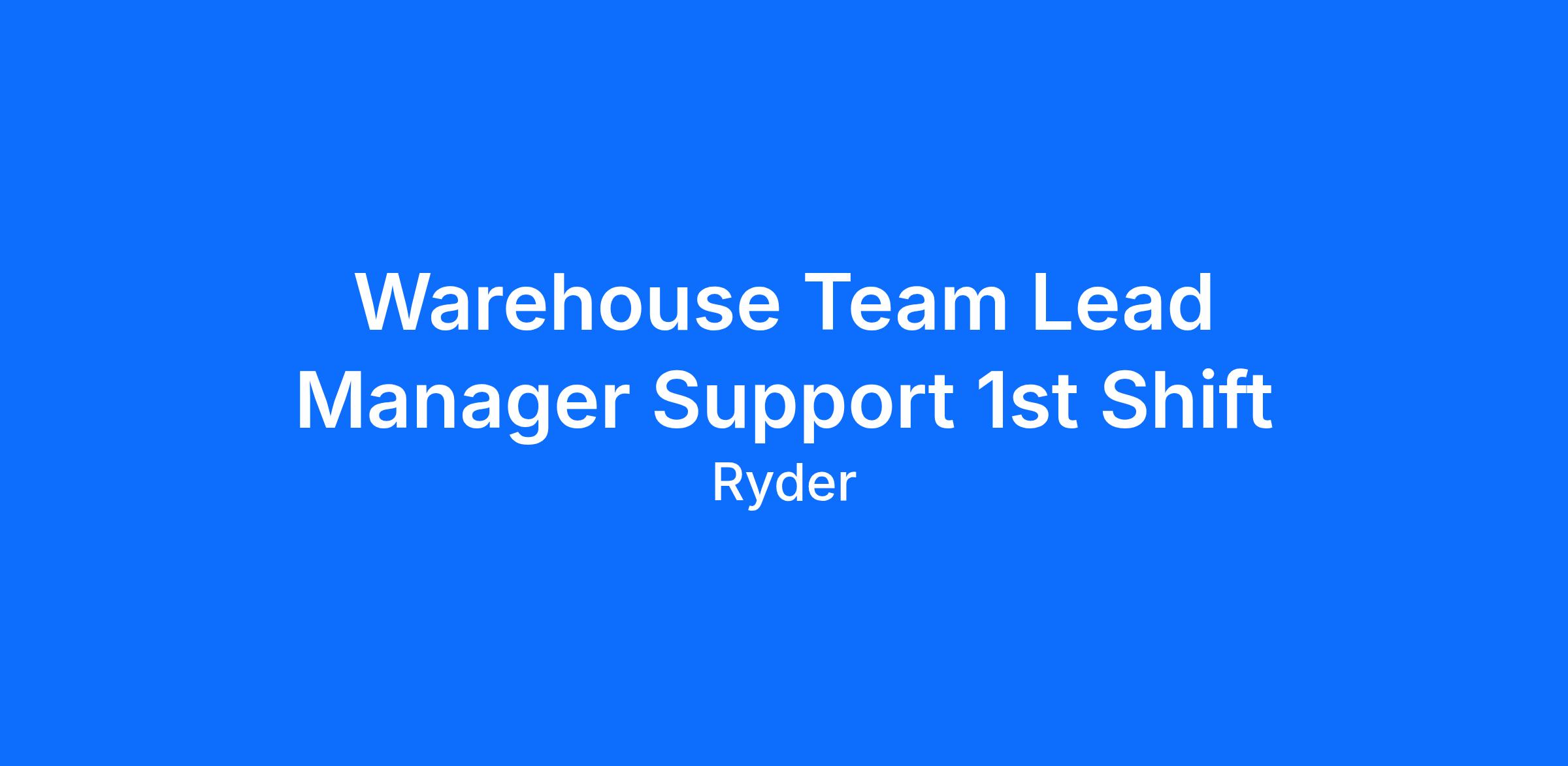 Warehouse Team Lead Manager Support 1st Shift