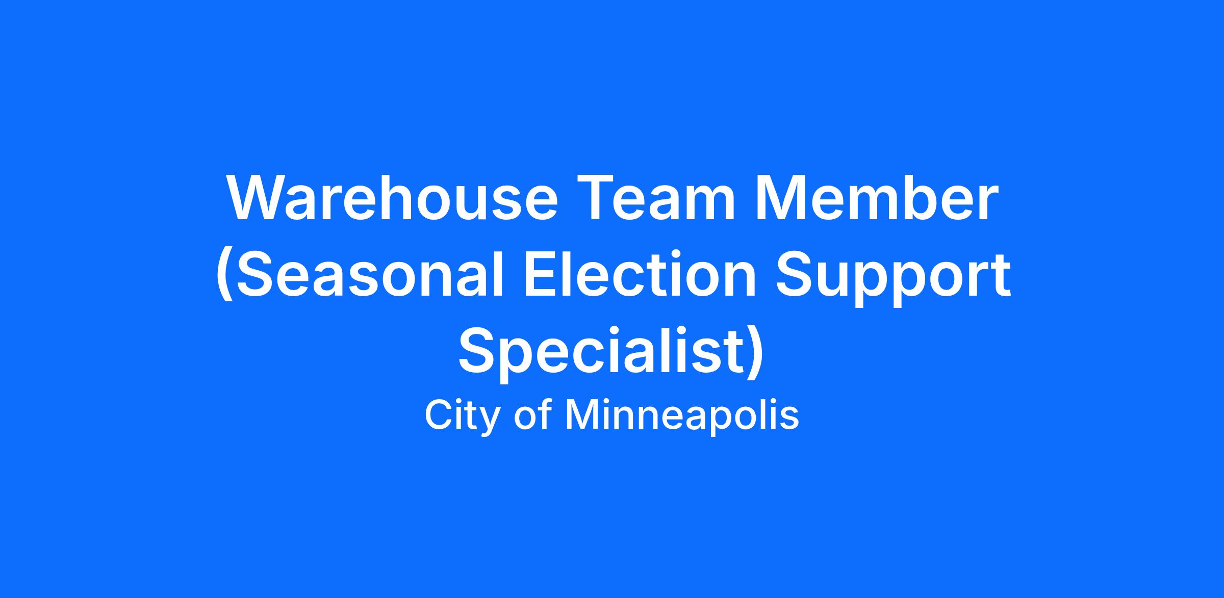 The City Clerk’s Office is looking to fill up to two (2) temporary Warehouse Team Member (Seasonal Elections Support Specialist) positions. Elections Warehouse Staff will assist with various election activities: warehouse duties and facilitation, prepare election materials, and general warehouse & clerical duties as needed.