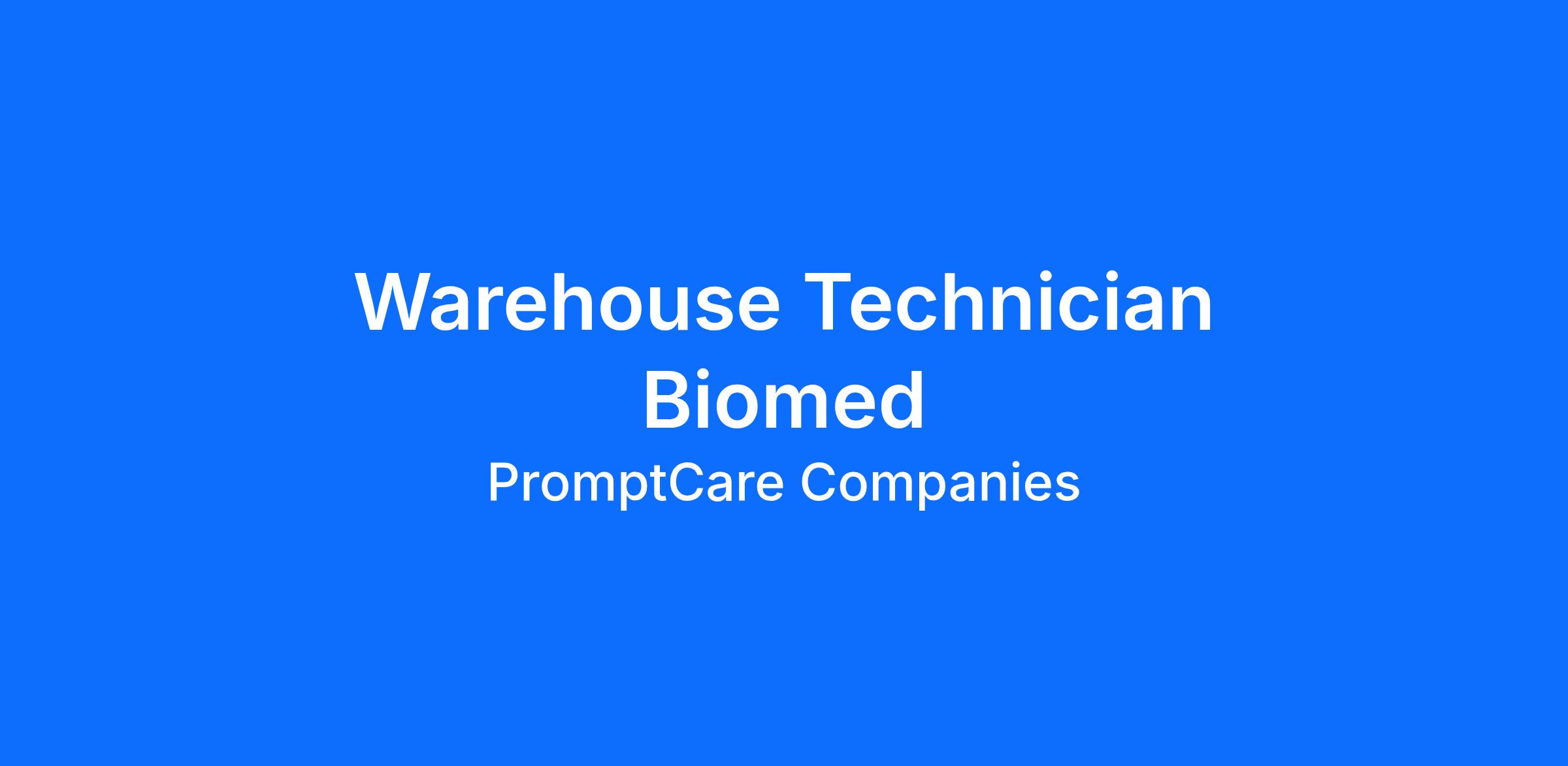 PromptCare is seeking a highly motivated and skilled Warehouse Technician to join our Biomed Repair team. As a Warehouse Technician you will be responsible for cleaning, disinfection, testing of a diverse range of high tech and low tech Respiratory and Monitoring equipment. This also requires repairing medical equipment, data entry, barcoding, charge of maintenance files and equipment tracking, sends out all equipment that is due for servicing/certification and handles all other related documentation. Also handles all equipment recalls, follows all FDA’s regulations and ACHC regulations and all other duties that apply. If you are a detail-oriented individual, we encourage you to apply for this exciting opportunity. To learn more about our company, visit us at PromptCare In-home Respiratory and Infusion