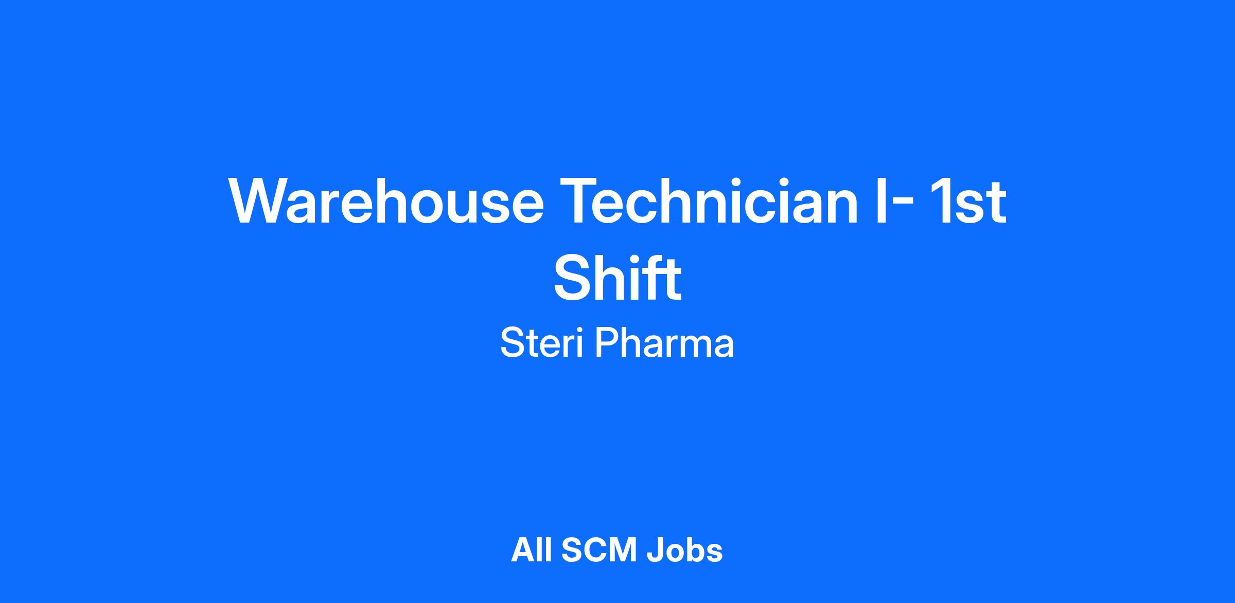**Please note: this job posting is for the 1st Shift, Warehouse Technician I role. If you are interested in another position and/or shift, please apply to the relevant job posting. **