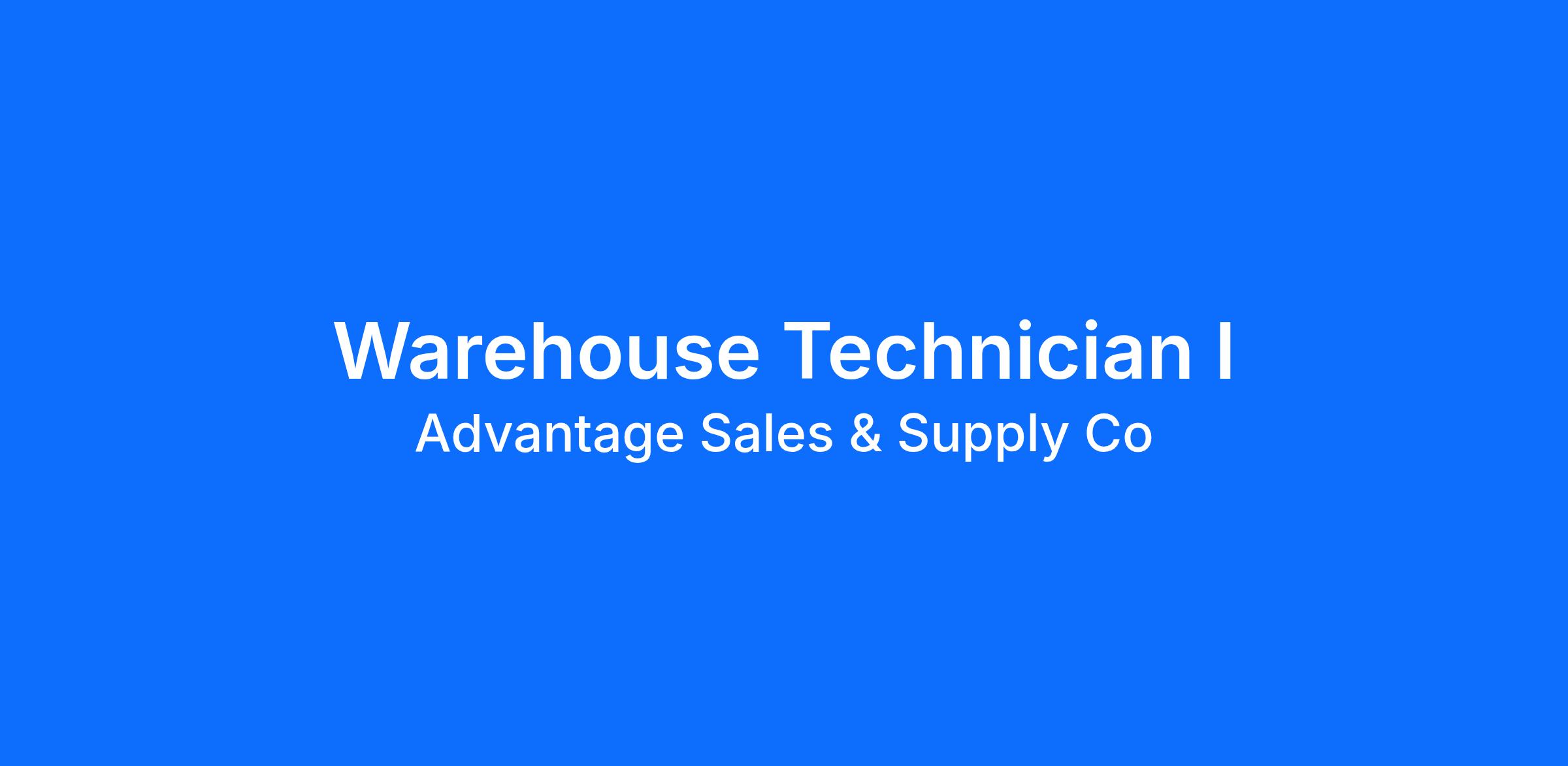 · Six months of experience in warehouse operations or manufacturing preferred for a Level I Technician.
