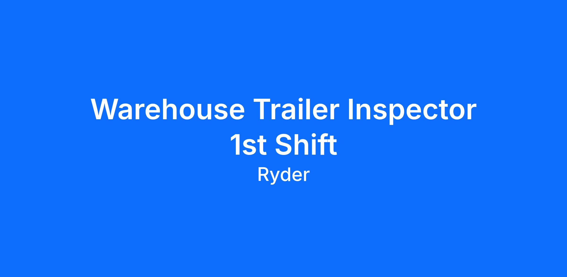 Immediately hiring a Permanent Full Time Warehouse Trailer Inspector to support our Facility at Ryder in Golden, Colorado