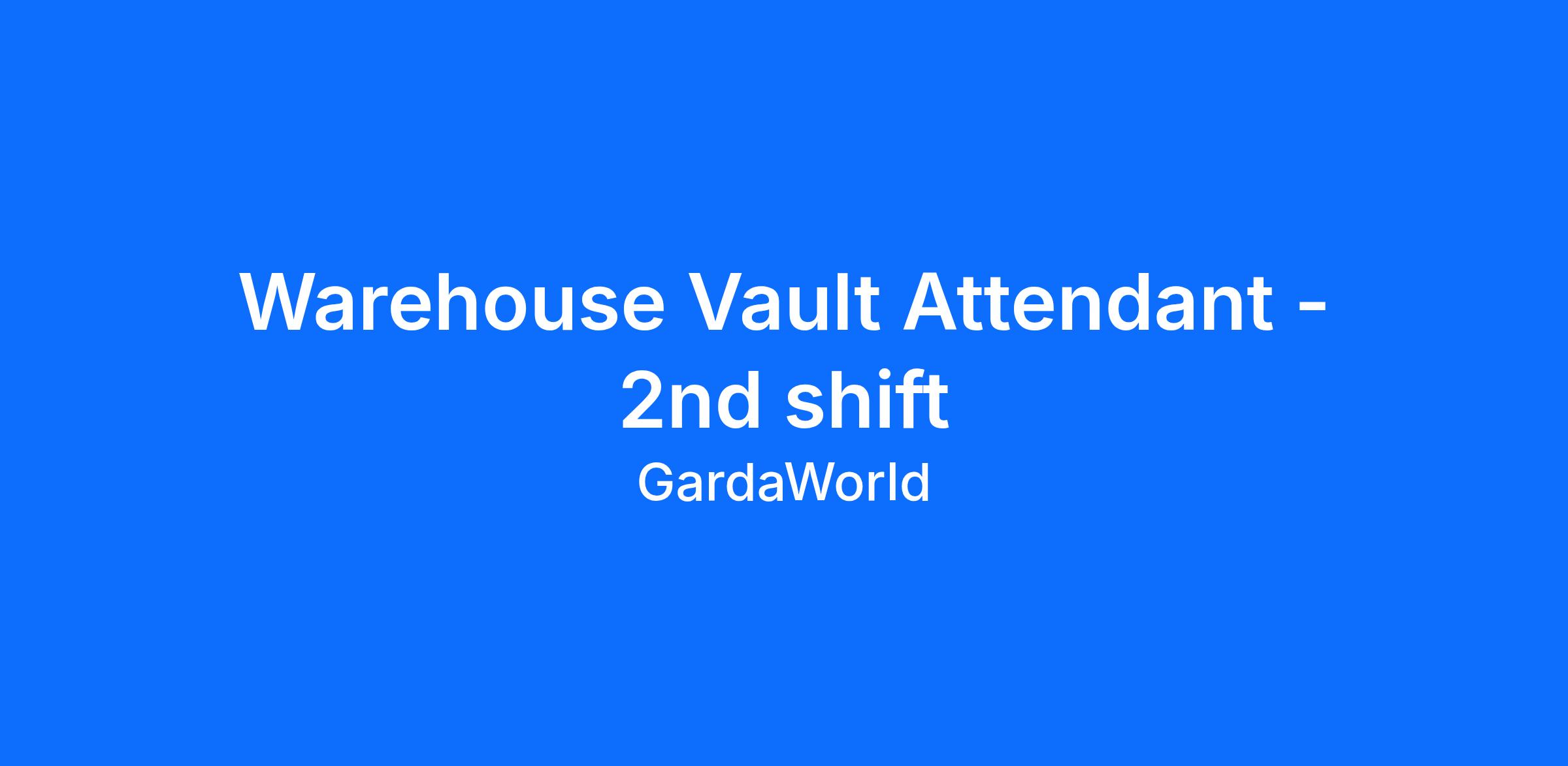 GARDAWORLD a national leading cash services and armored car company, has an immediate opening for a Vault Custodian. This is an excellent opportunity to join one of the nation’s leading cash logistics companies.