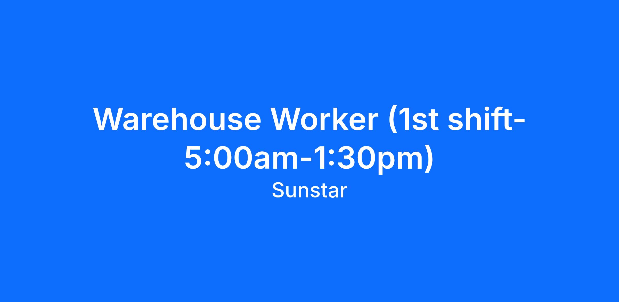 Warehouse Worker (1st shift- 5:00am-1:30pm)