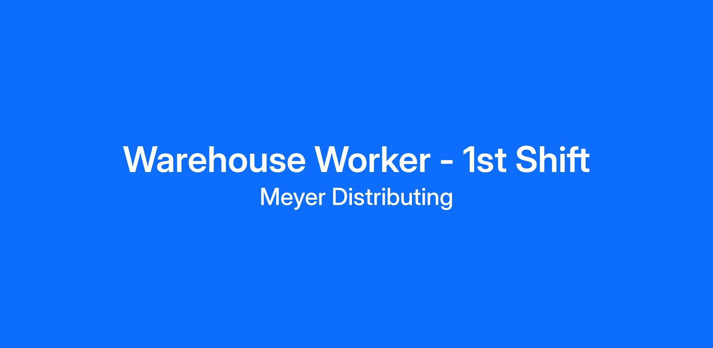 Meyer Distributing is looking for Warehouse Workers to join our Jasper, IN team!