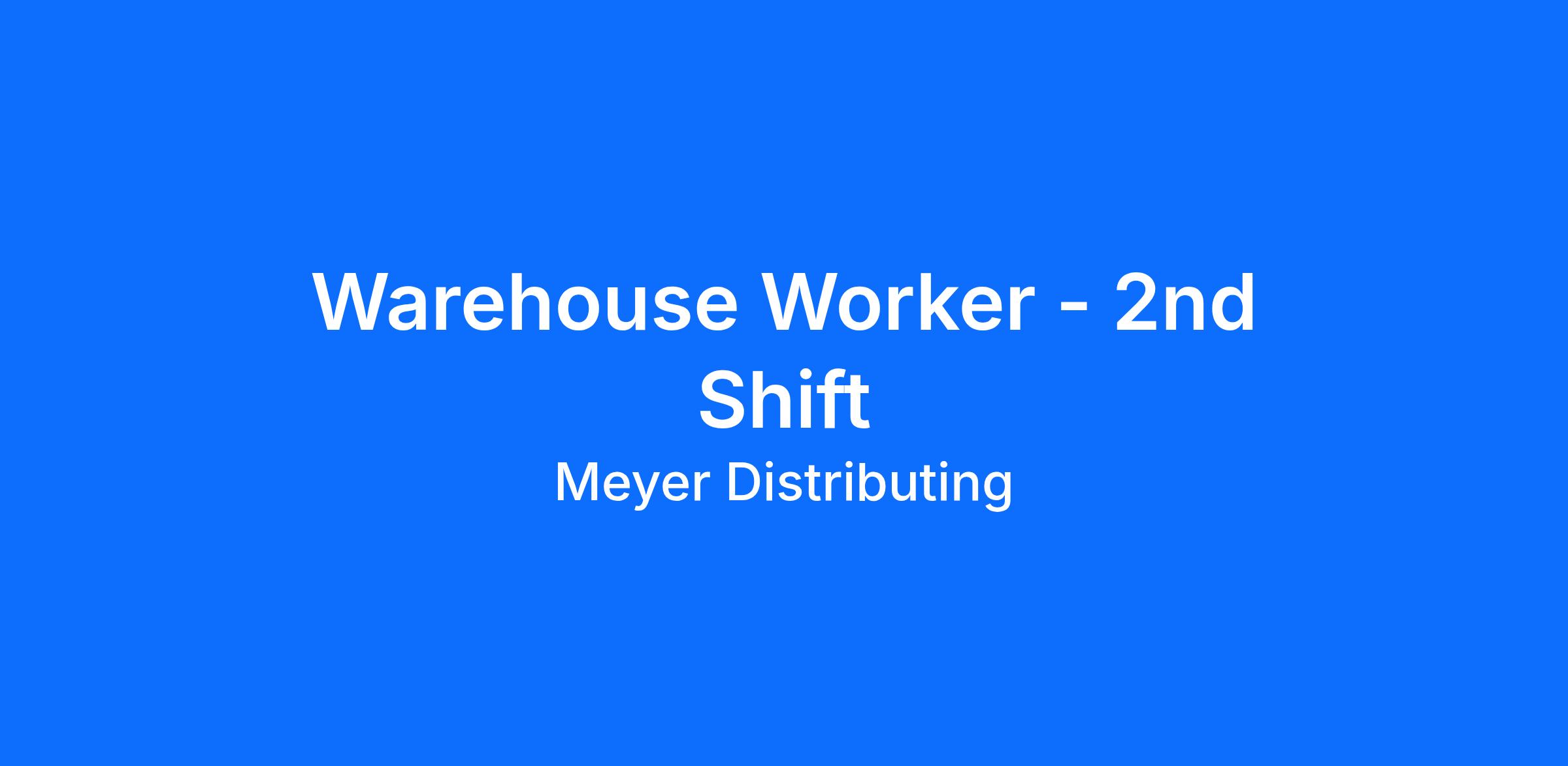 Meyer Distributing is looking for Warehouse Workers to join our Jasper, IN team!