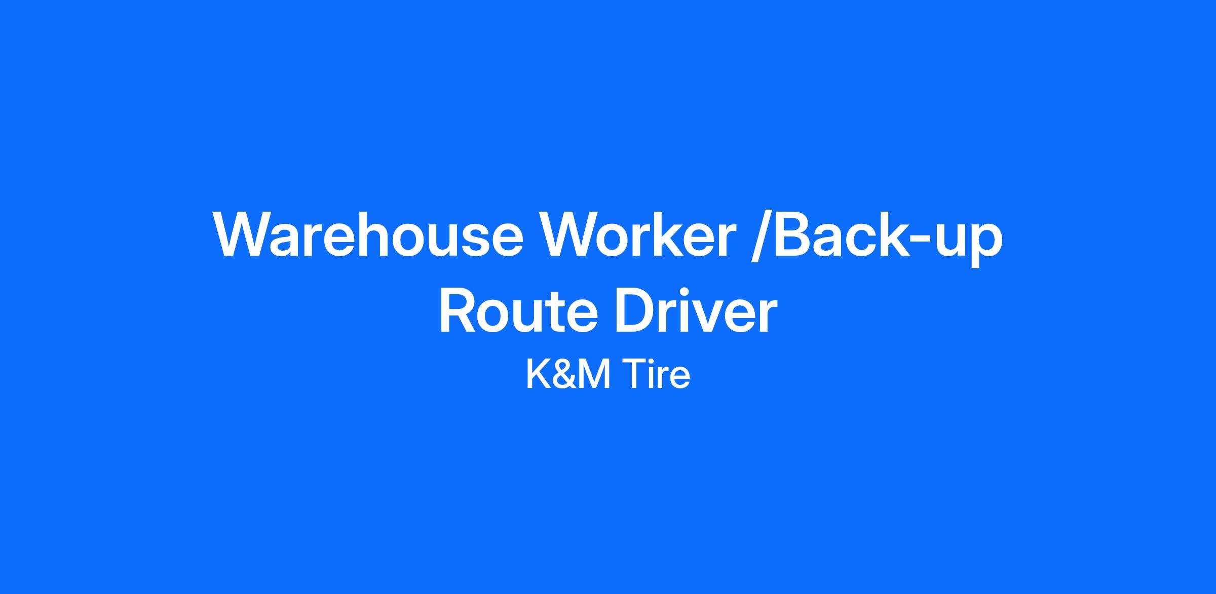 Job Summary: The WAREHOUSE EMPLOYEE BACKUP DRIVER works under the direction of the Warehouse Manager, Assistant Manager, or Team Leader; responsible for unloading and/or loading trucks, as well as picking/pulling and/or putting away tires/products.