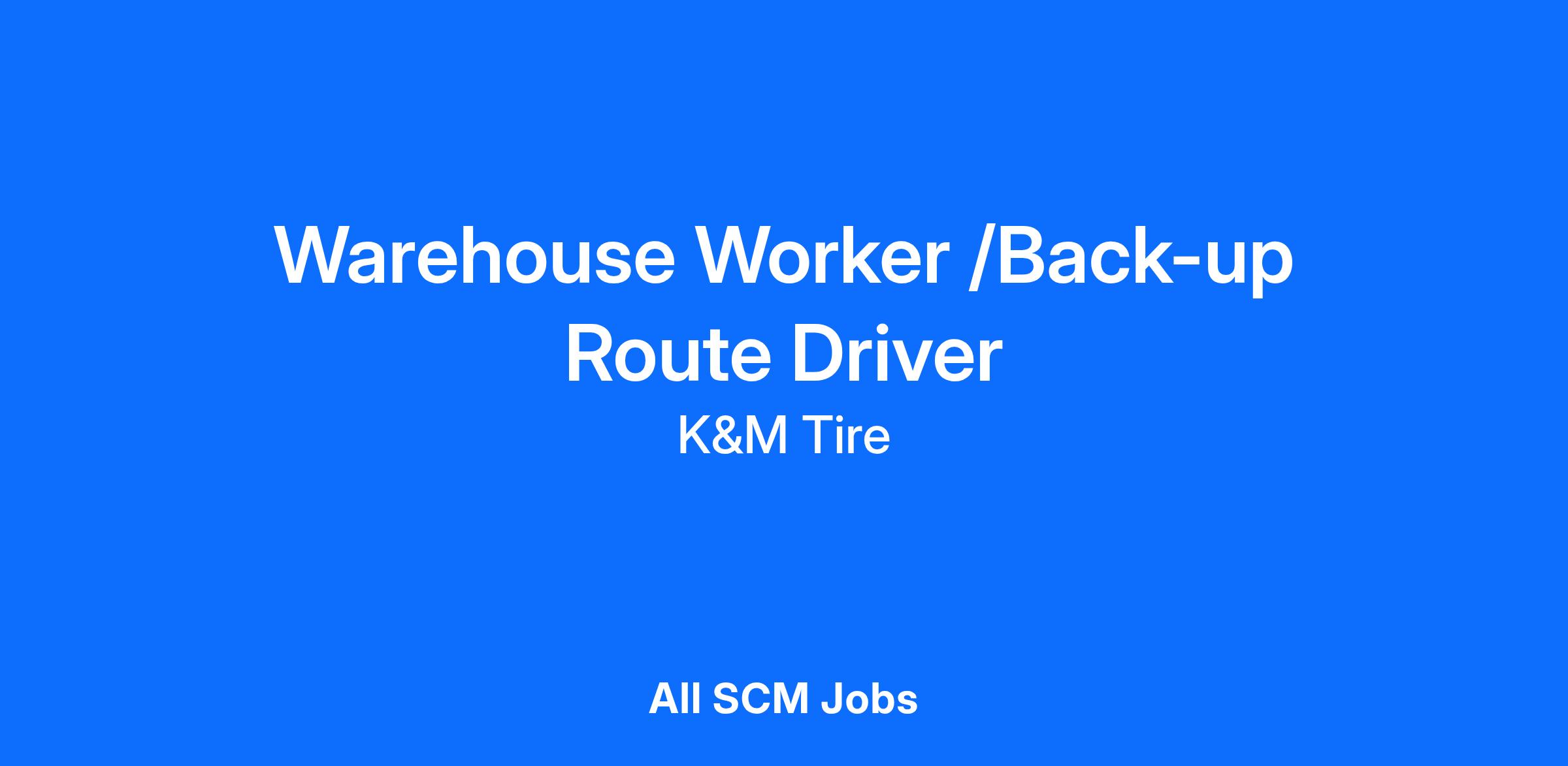 Job Summary: The WAREHOUSE EMPLOYEE BACKUP DRIVER works under the direction of the Warehouse Manager, Assistant Manager, or Team Leader; responsible for unloading and/or loading trucks, as well as picking/pulling and/or putting away tires/products.
