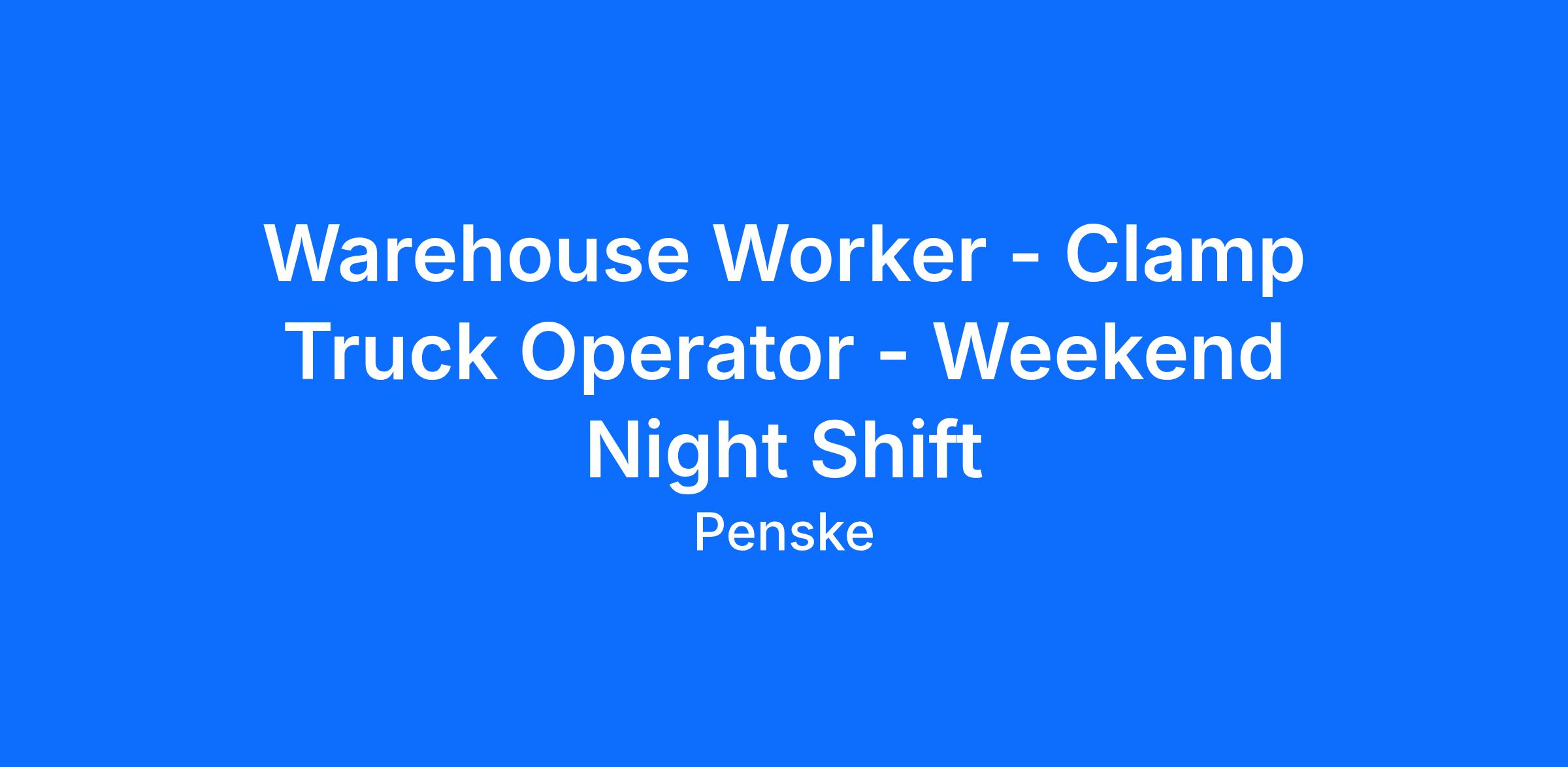 Penske Logistics is looking for a Forklift Operator to become part of an excellent team. This is a great opportunity for individuals who are safety conscious and have a pleasant and outgoing attitude who want to excel in a warehouse environment.