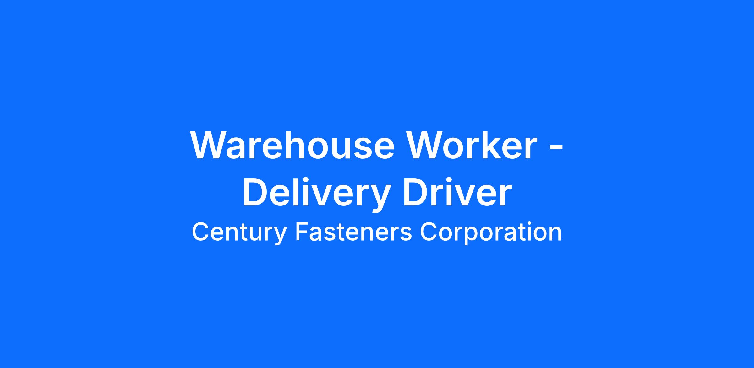 Century Fasteners Corporation, established in 1955, is an international master distributor of fasteners and non-fastener products, including military, aerospace, commercial, and electronic components, representing premier manufacturers in the industry. We have multiple locations throughout the United States with our corporate headquarters located in Elmhurst, NY. Concentrating our priority on customer service, we have obtained a stellar reputation within the industry. That reputation is built by our greatest asset…our employees. Due to our continued growth and success, we are currently seeking a Warehouse Worker to join our staff.