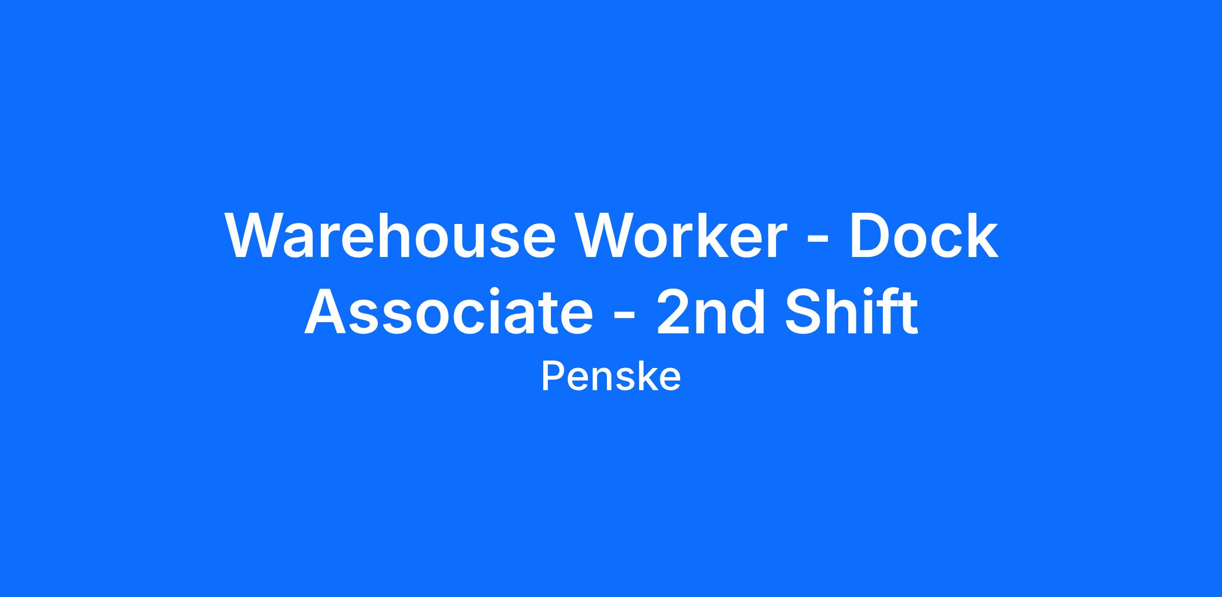 Penske Logistics is looking for warehouse dock associates to become part of an excellent team. This is a great opportunity for individuals who are safety conscious and have a pleasant, outgoing attitude who want to excel in a warehouse environment.
