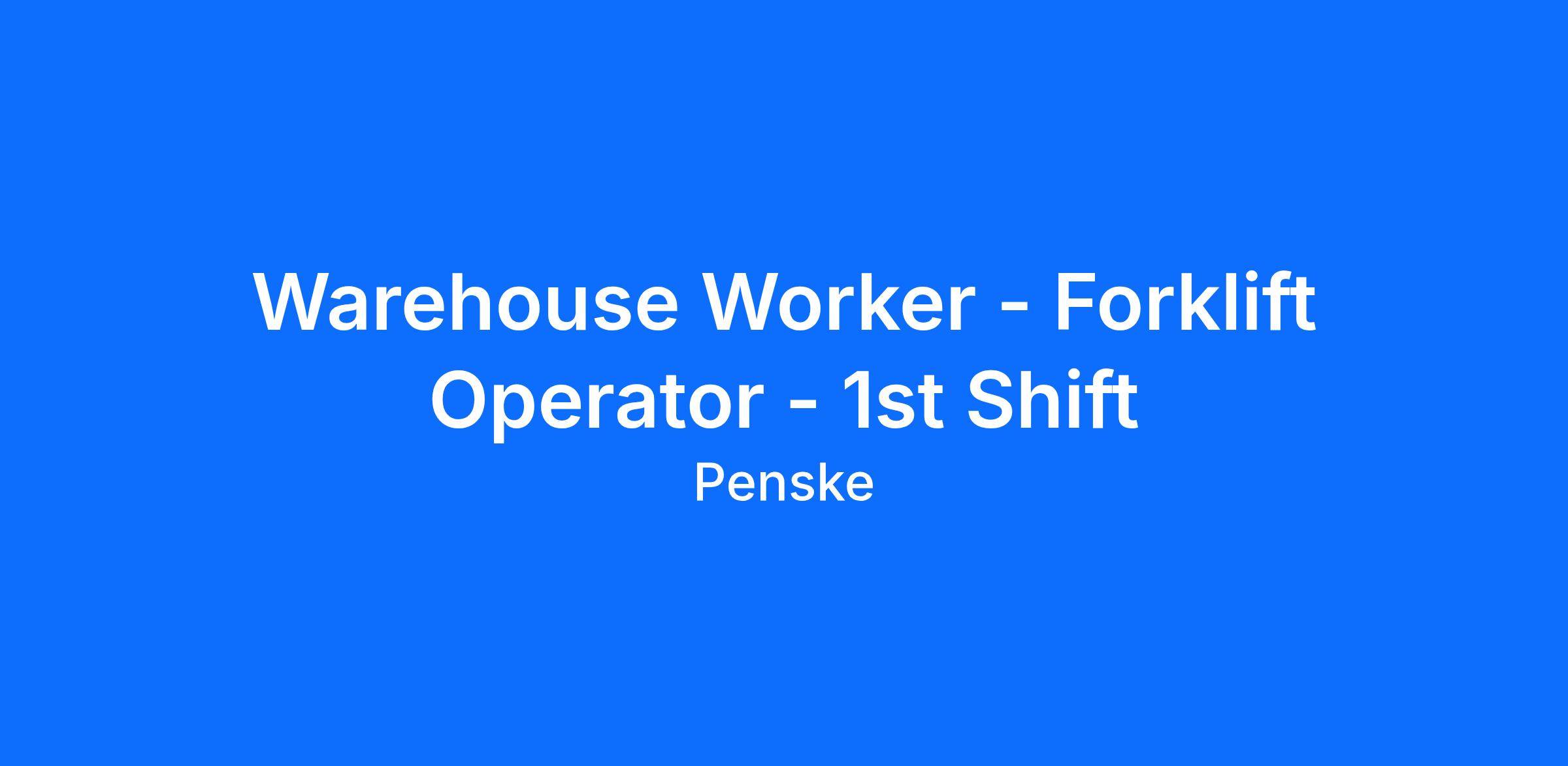 Penske Logistics is looking for warehouse associates to become part of an excellent team. This is a great opportunity for individuals who are safety conscious and have a pleasant, outgoing attitude who want to excel in a warehouse environment.