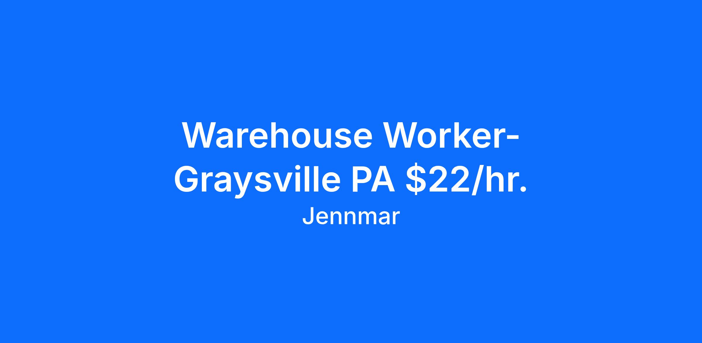 JENNMAR Services is hiring Warehouse Workers in the Graysville, PA area to support operations in the energy industry. This is a secure opportunity for dependable, hardworking individuals who want consistent hours, room to grow, good pay, and full benefits.
