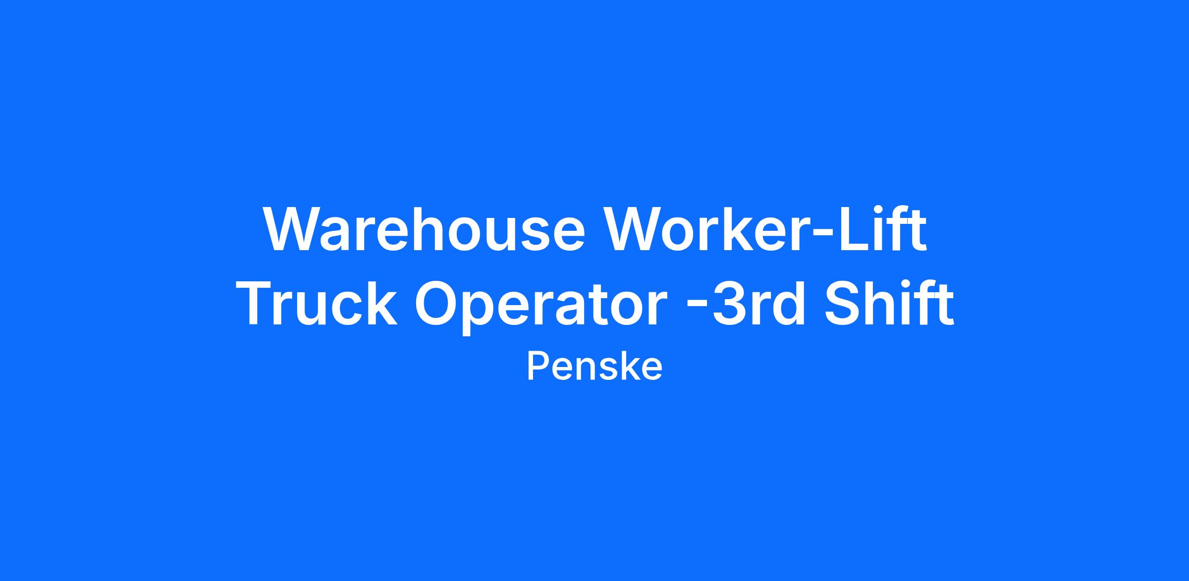 Penske Logistics is looking for warehouse associates to become part of an excellent team. This is a great opportunity for individuals who are safety conscious and have a pleasant, outgoing attitude who want to excel in a warehouse environment.