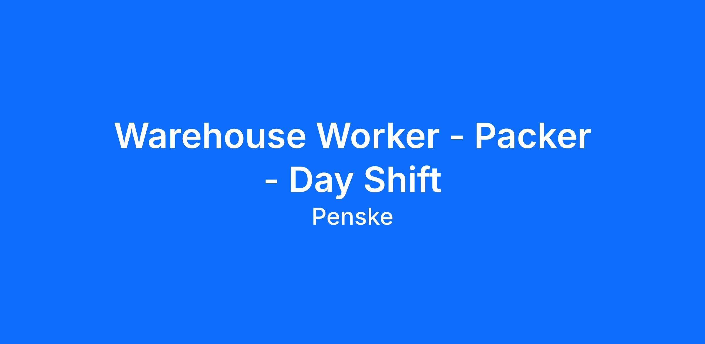 DescriptionPenske Logistics is looking for warehouse associates to become part of an excellent team. This is a great opportunity for individuals who are safety conscious and have a pleasant, outgoing attitude who want to excel in a warehouse environment.