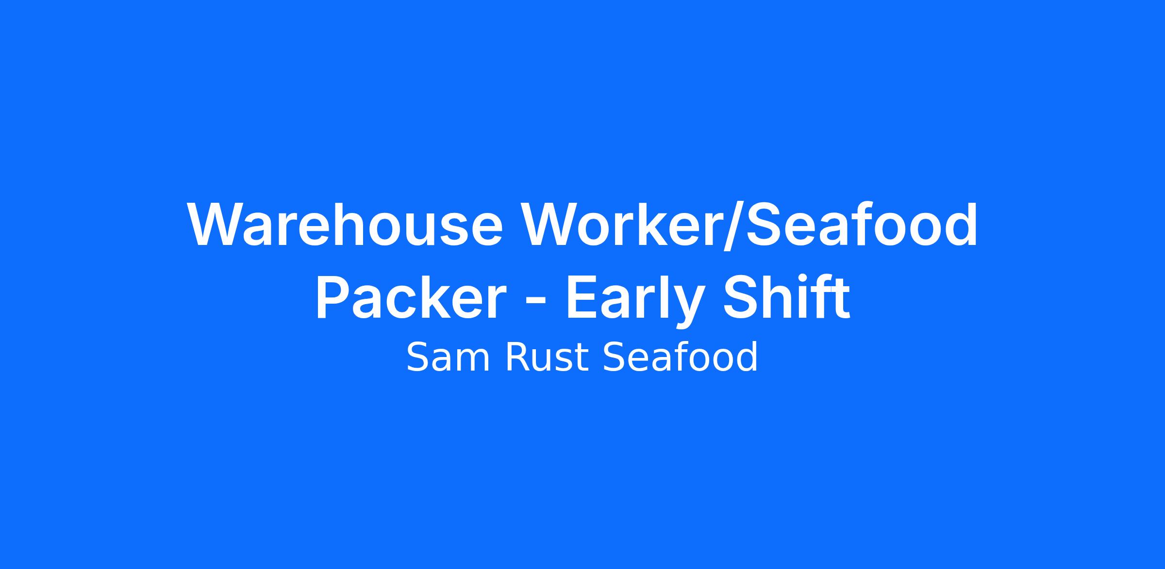 This position will require the individual to handle fresh seafood (including shellfish) within all areas of the warehouse. This is a refrigerated area (approx. 40 degrees) and requires "hands on" contact with product.