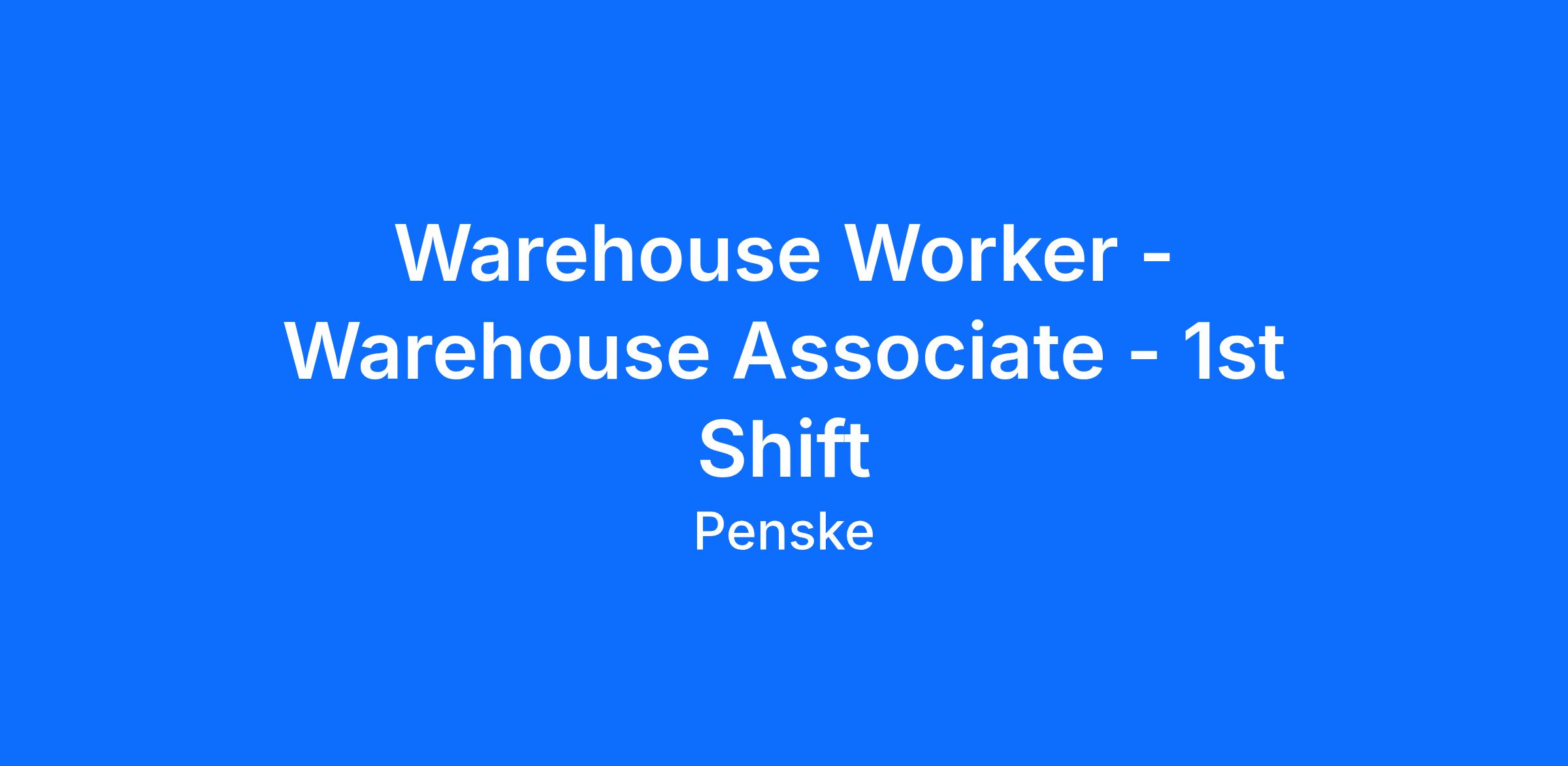 Warehouse Worker - Warehouse Associate - 1st Shift