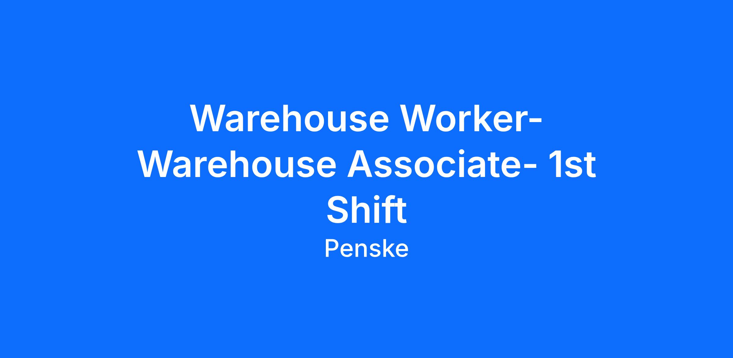 Penske Logistics is looking for warehouse associates to become part of an excellent team. This is a great opportunity for individuals who are safety conscious and have a pleasant, outgoing attitude who want to excel in a warehouse environment.