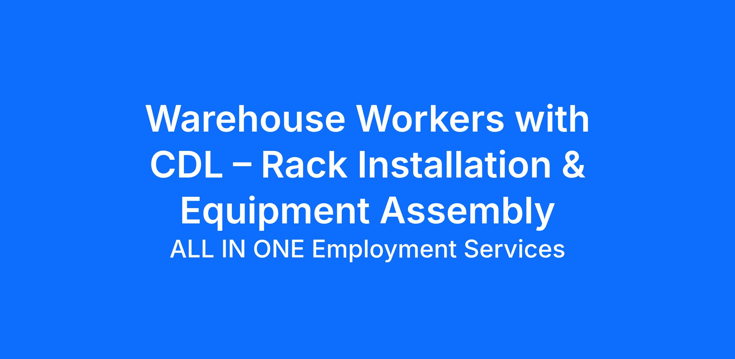Job Title: Warehouse Workers with CDL – Rack Installation & Equipment Assembly (Immediate Hire | Permanent Position)