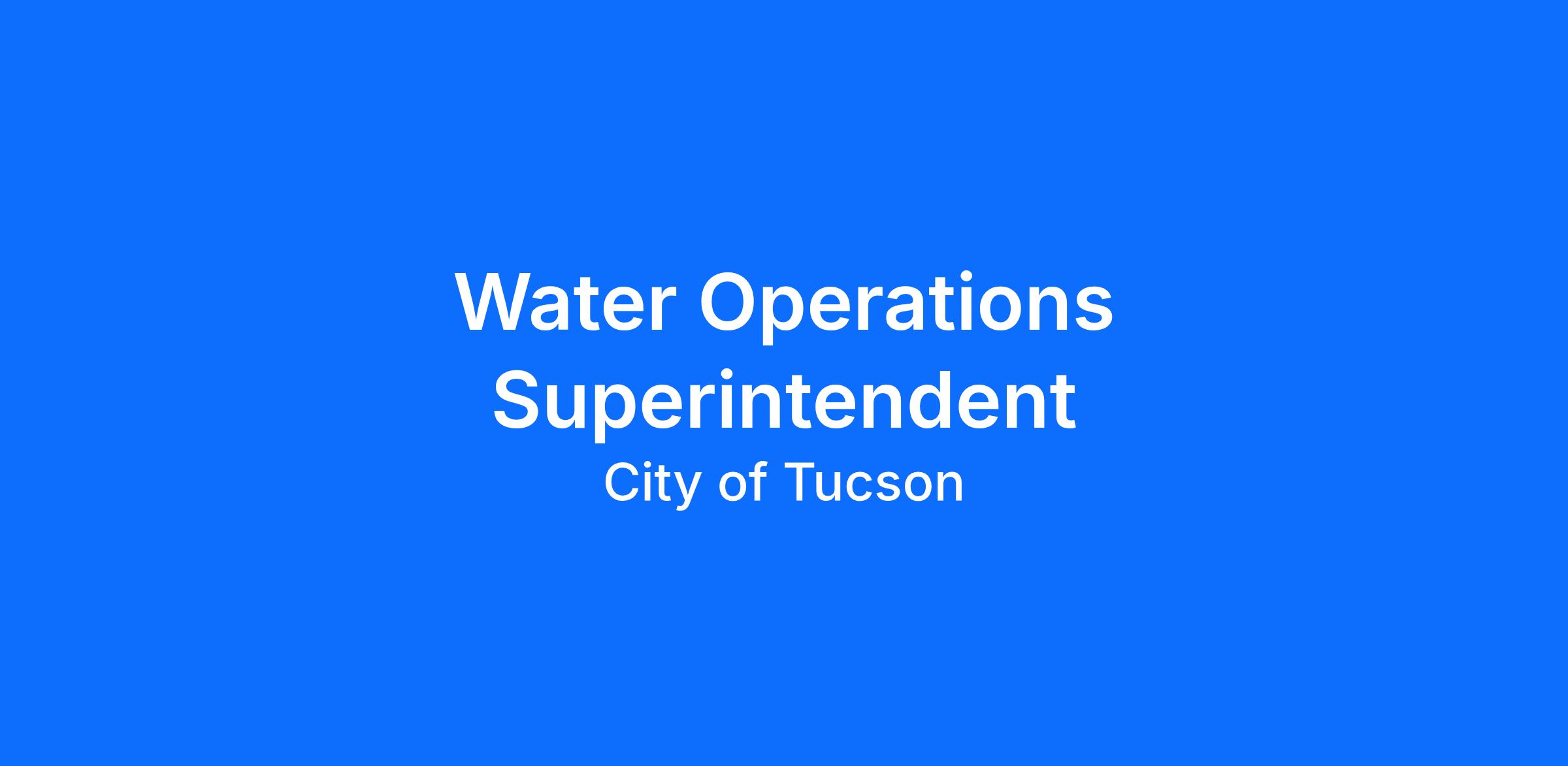 J4069 - Water Operations SuperintendentTo view the full job profile including classification specifications and physical demands click https://www.tucsonaz.gov/Departments/Human-Resources/Tucson-Talent.