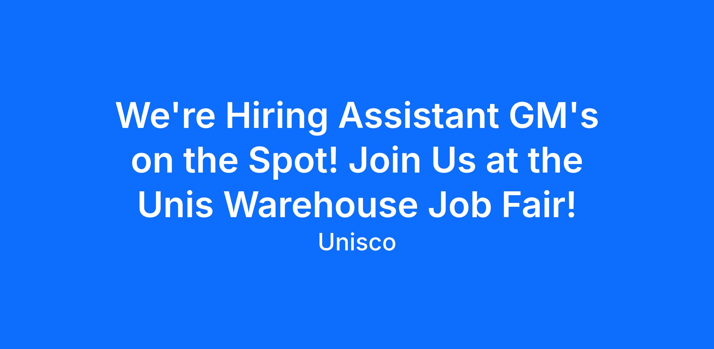 We're Hiring Assistant GM's on the Spot! Join Us at the Unis Warehouse Job Fair!