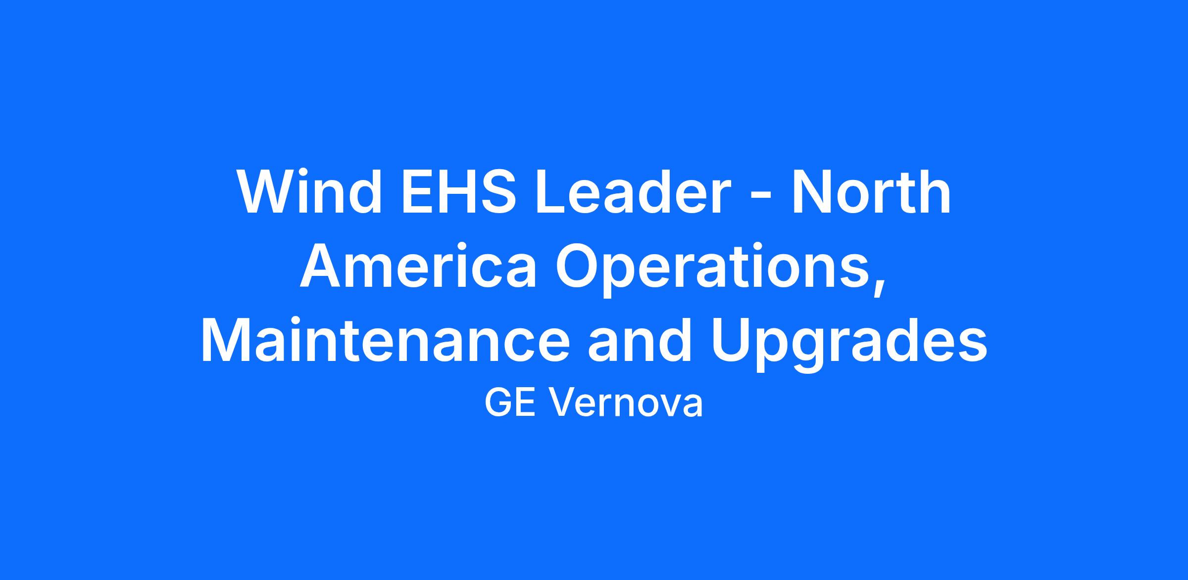 The North America EHS Leader for Wind provides strategic leadership and operational oversight for Environmental, Health, and Safety (EHS) across all wind operations in the region for work performed as part of Operations, Maintenance & Upgrades (OM&U) team. This role drives a strong safety culture, improves safety performance through data-driven insights, and establishes alignment and structure for a geographically dispersed EHS field team. The position interfaces with customers and contractors to communicate EHS performance and expectations, works cross-functionally to resolve complex issues, and exercises high levels of evaluative judgment and operational acumen to achieve outcomes.