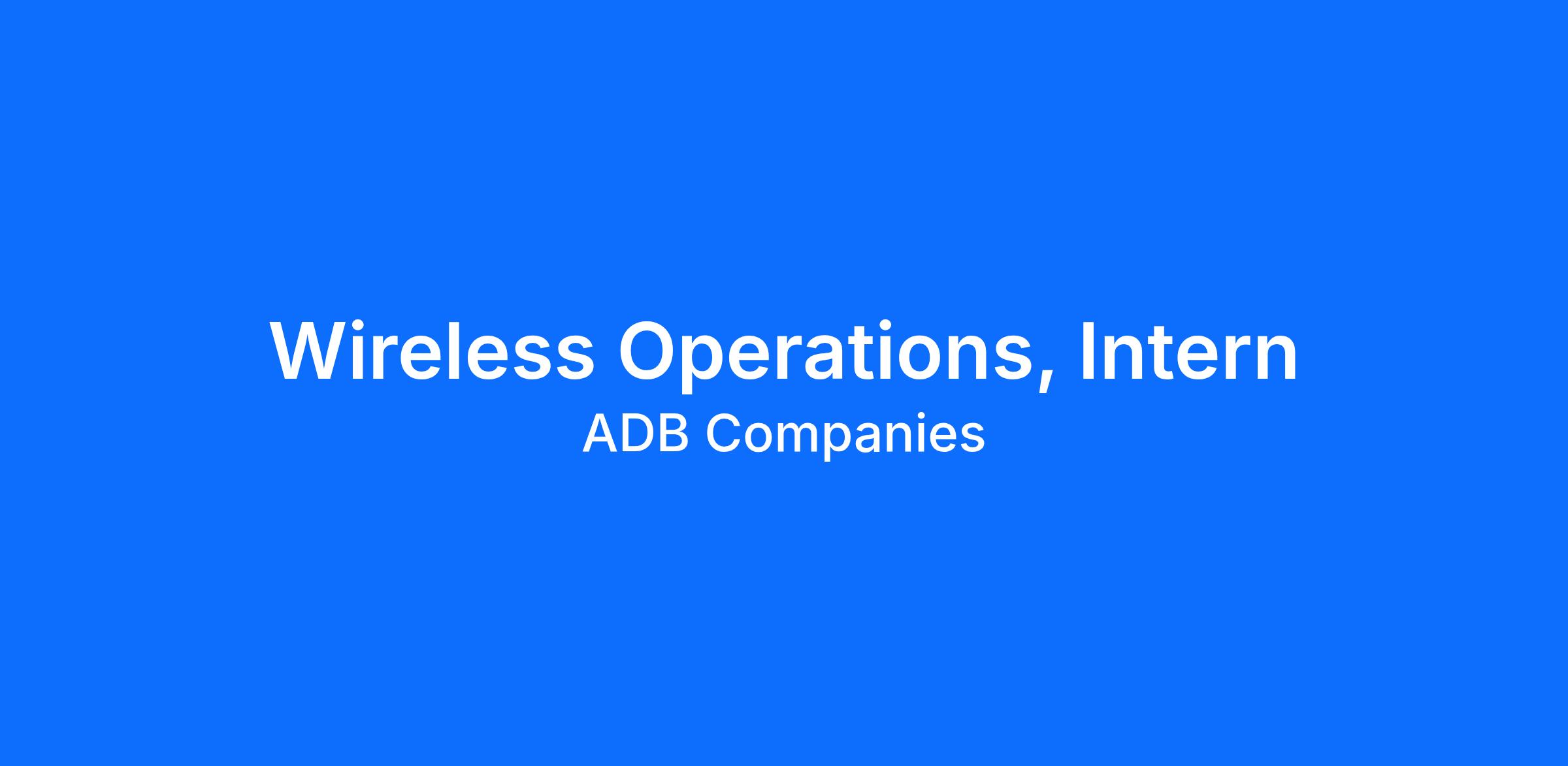 ADB is seeking a motivated and passionate Intern to support the Wireless team in day-to-day functions of the department. During the internship the goal is to build upon your educational knowledge and develop the skills and experience needed to be successful in all aspects of ADBs Wireless team processes. The ideal candidate will have a GPA of 2.5 or higher with a strong work ethic and ALL IN attitude to achieve results.