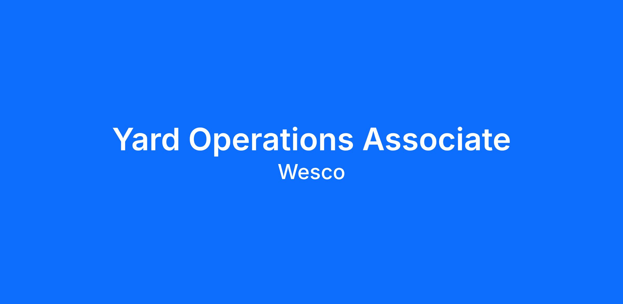 Launch your Career! We are hiring immediately for a Yard Operations Associate! We will teach you about distribution and supply chain techniques valued by Fortune 250 companies from around the globe. We are Wesco! We enable the connected world - you help turn on the power.